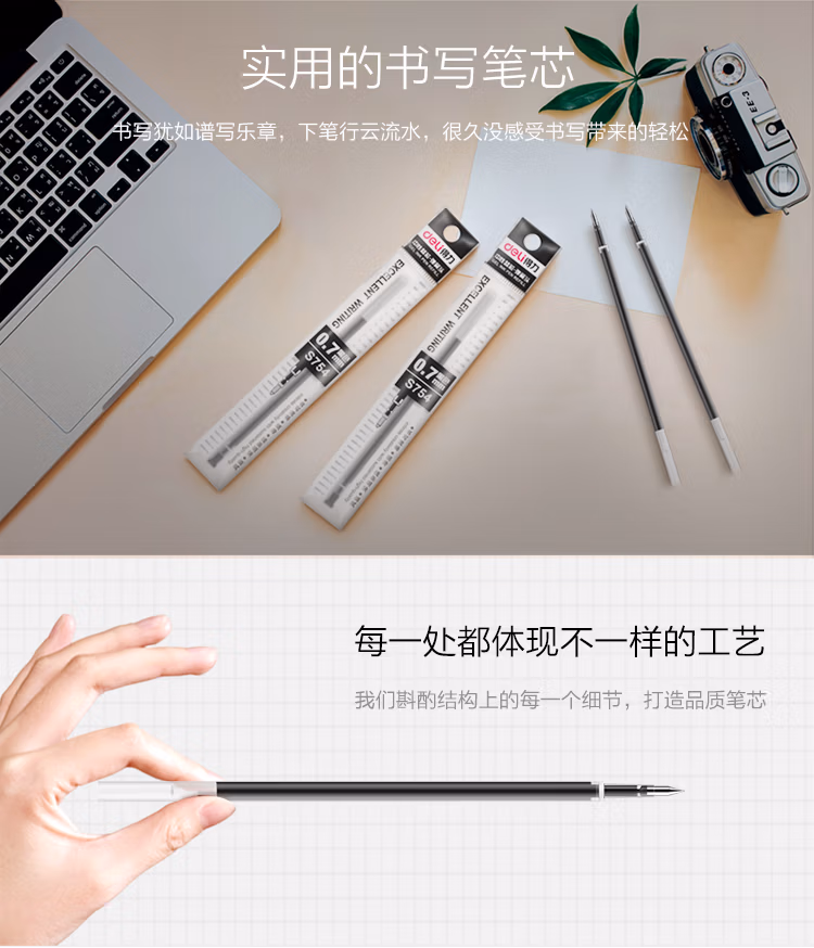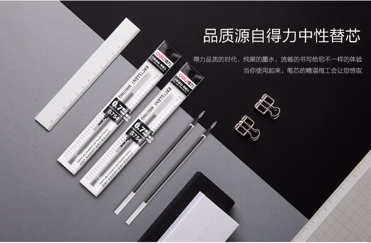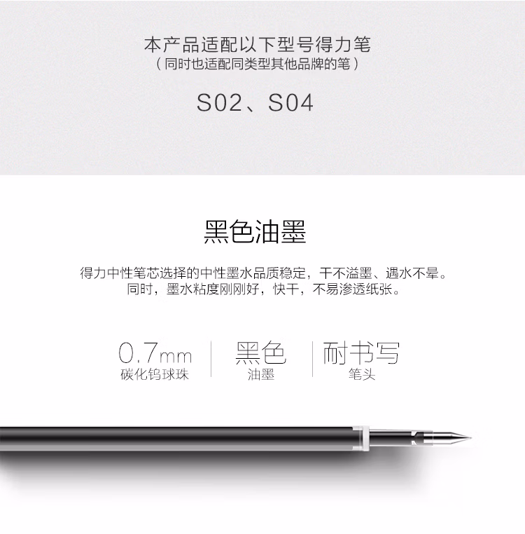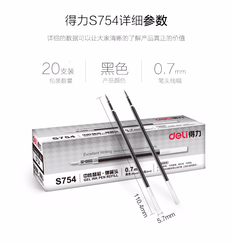 得力S754弹簧头中性笔芯0.7mm弹簧头(黑)(支)