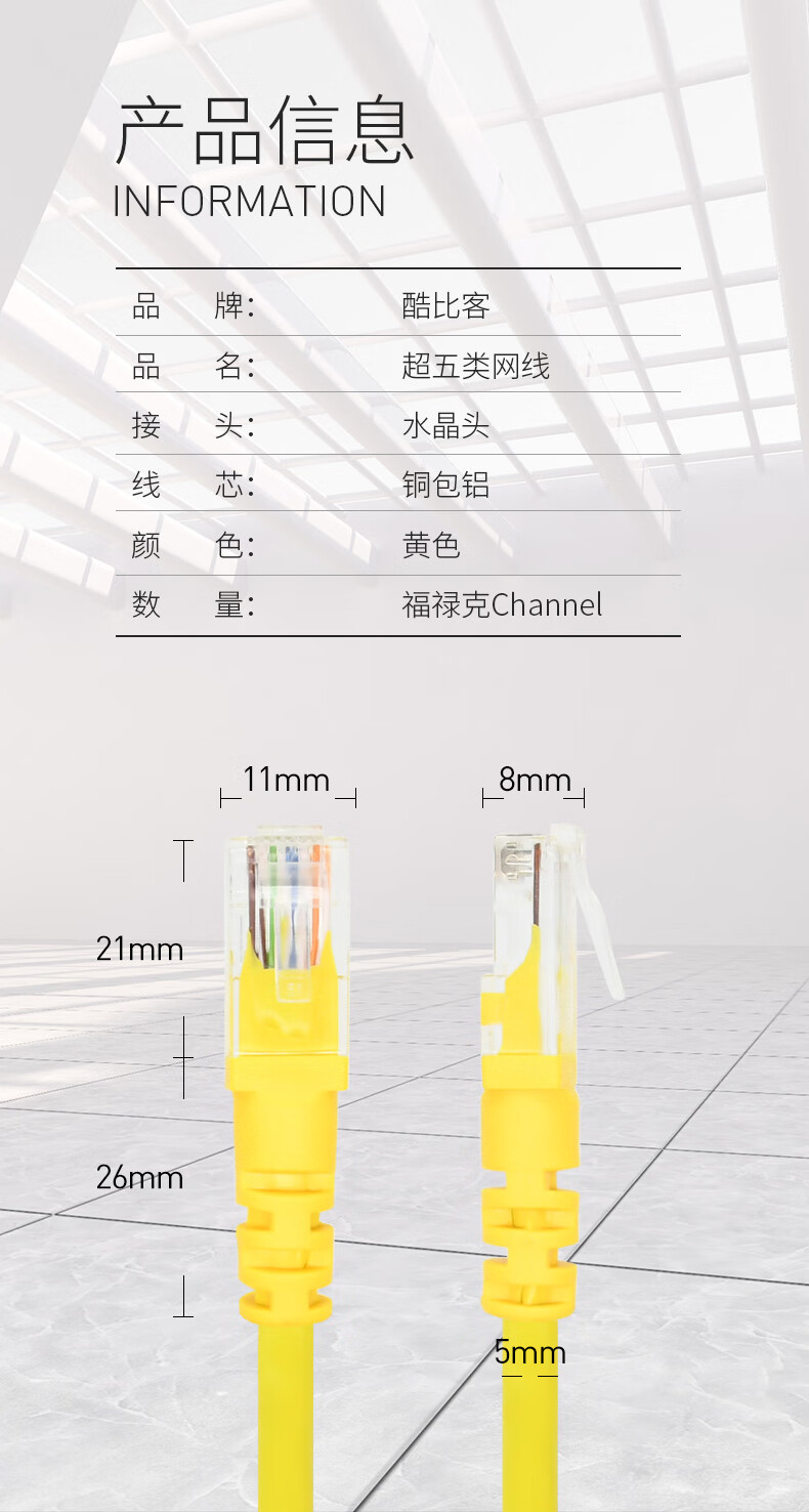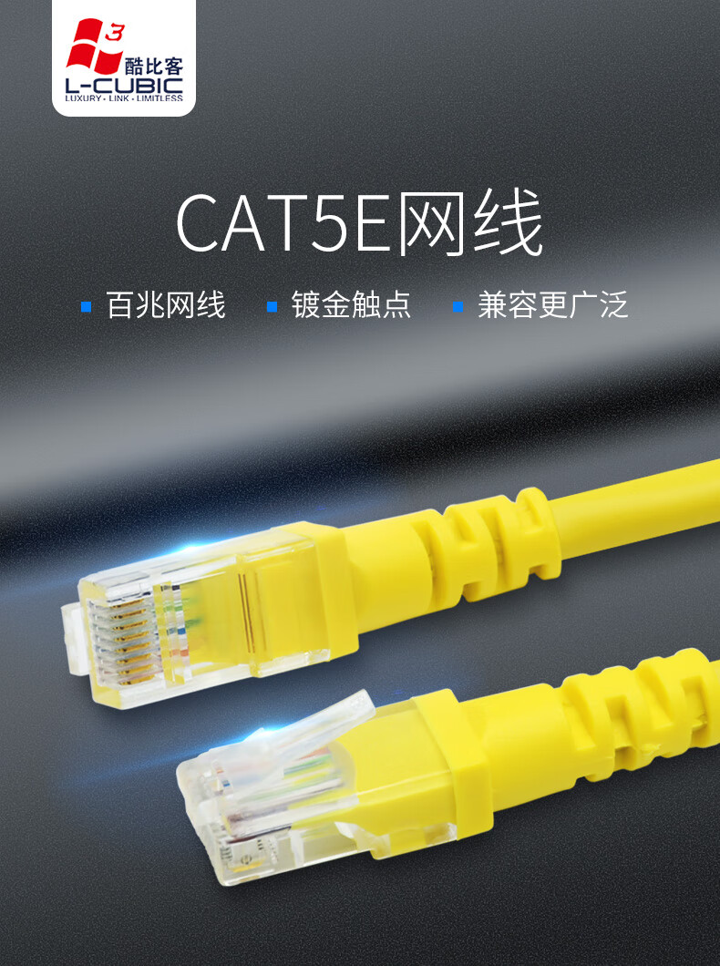 酷比客(L-CUBIC) 超五类铜包铝网线百兆网络跳接线cat5e 八芯双绞直通成品线 黑色 10米 单位:根