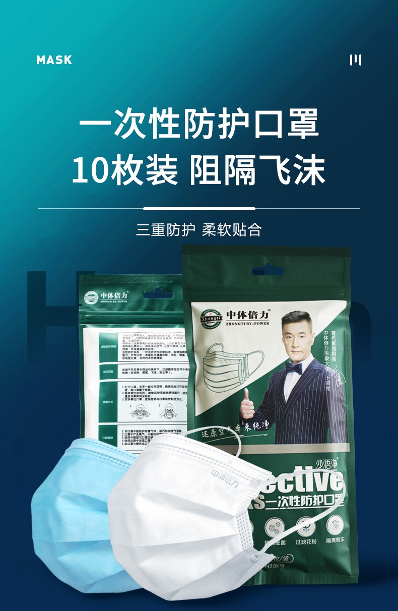 中体倍力 一次性口罩含熔喷布防飞沫细菌男女通用口罩 【成人款】珍珠白50枚/5袋(细菌过滤>95%) 单位:袋