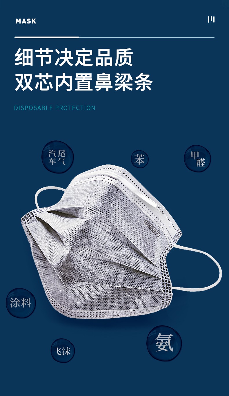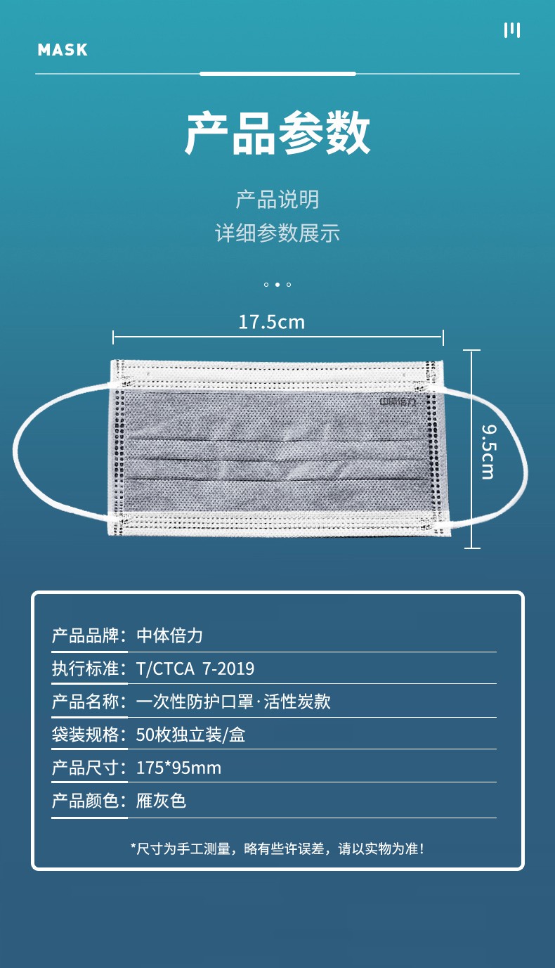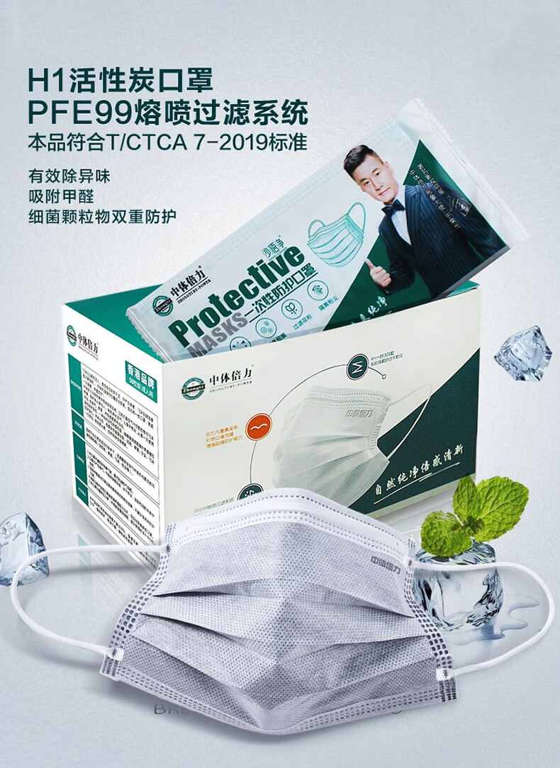 中体倍力 一次性活性炭熔喷布防尘防飞沫甲醛男女防护口罩 H1-50枚装-活性炭-独立包装 单位:盒