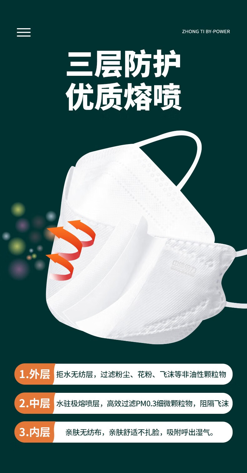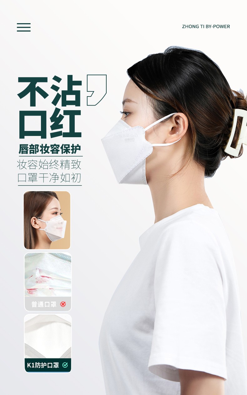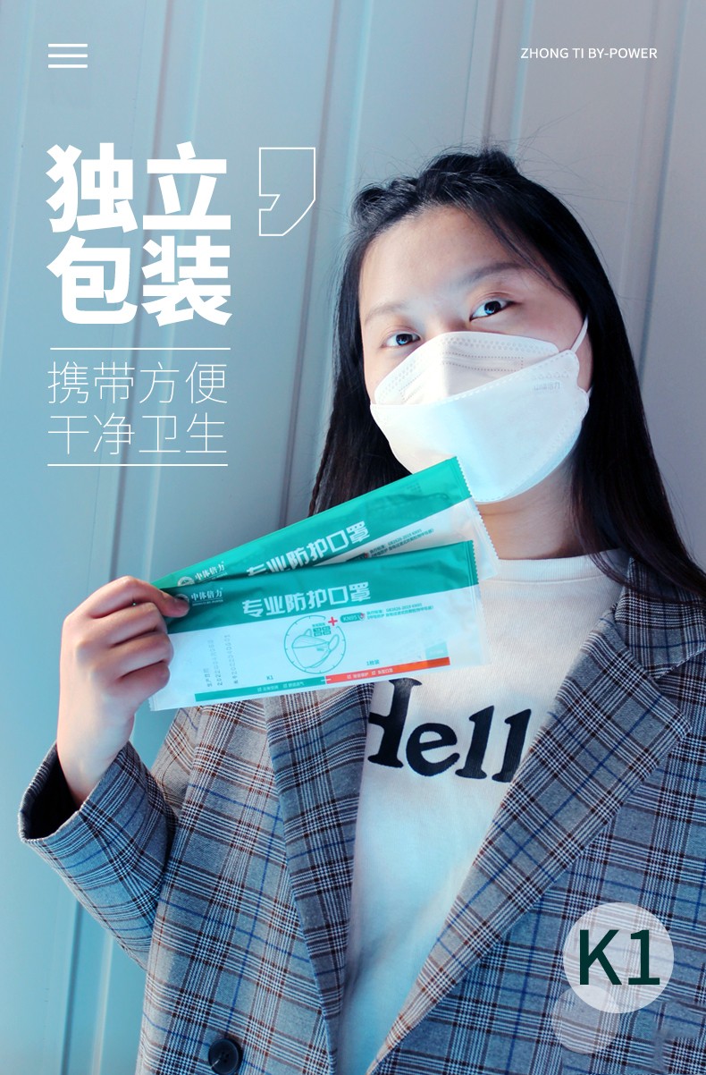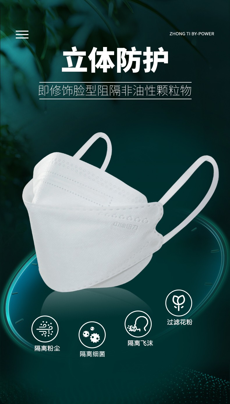 中体倍力KN95立体防护柳叶型一次性独立包装鱼型口罩 K1-25白色【25枚装-独立包装】单位:盒