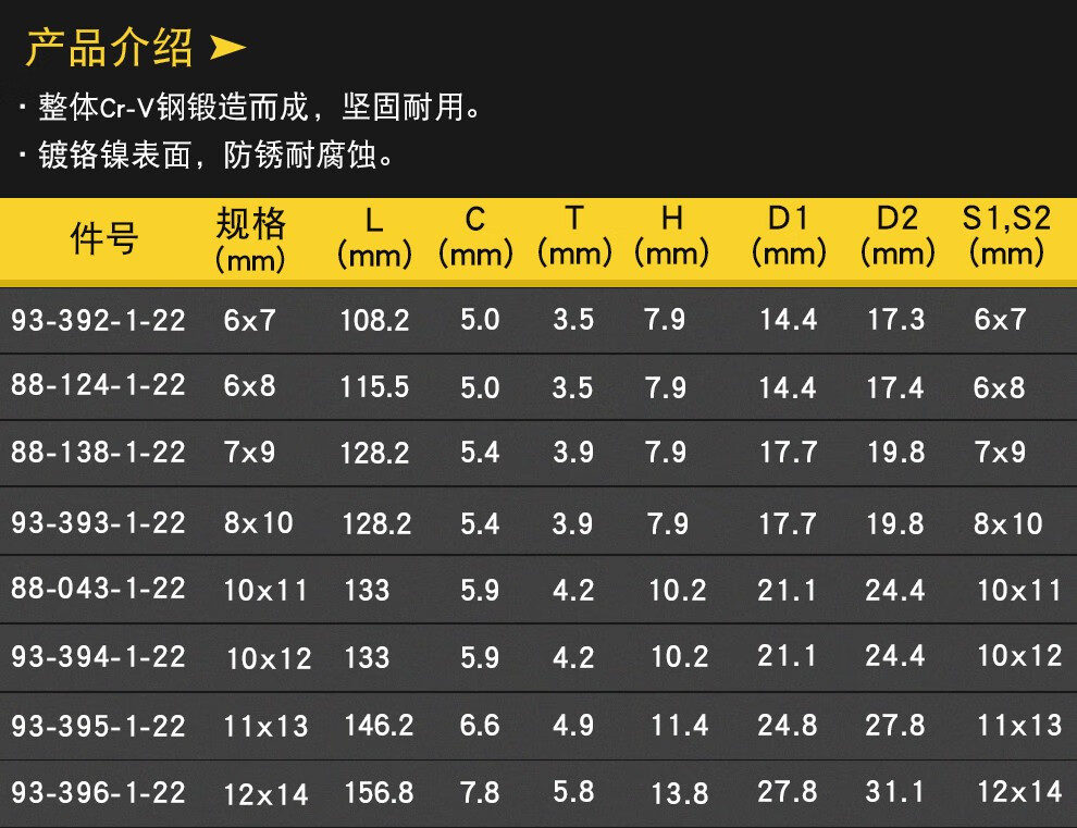 史丹利(Stanley)双开口扳手 双头呆扳手 8x10mm 单支 (单位:把)
