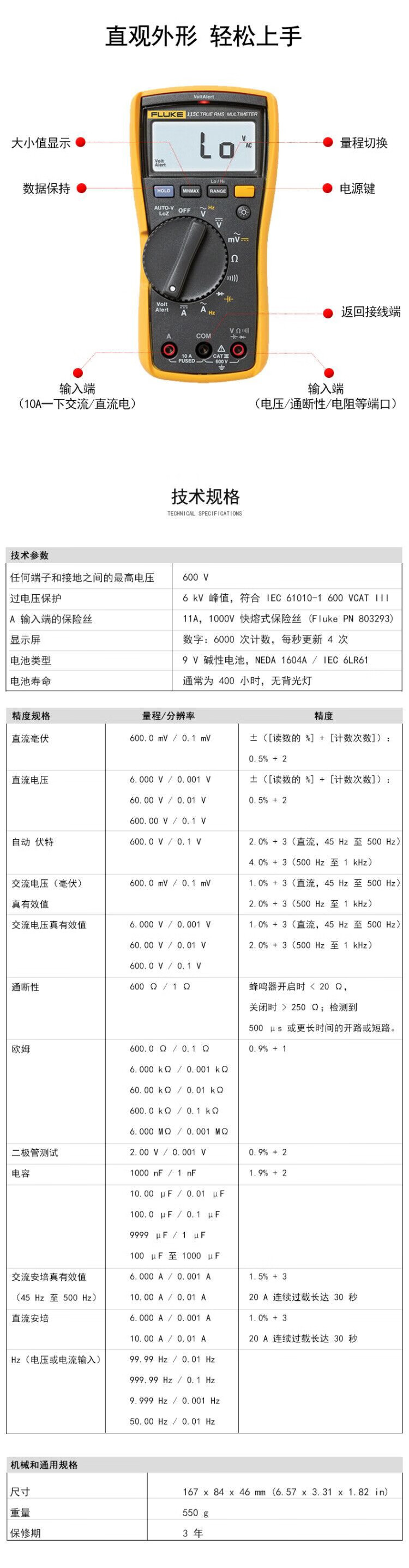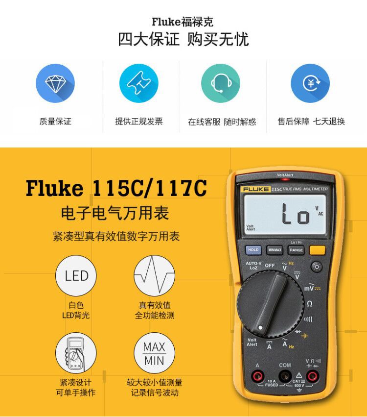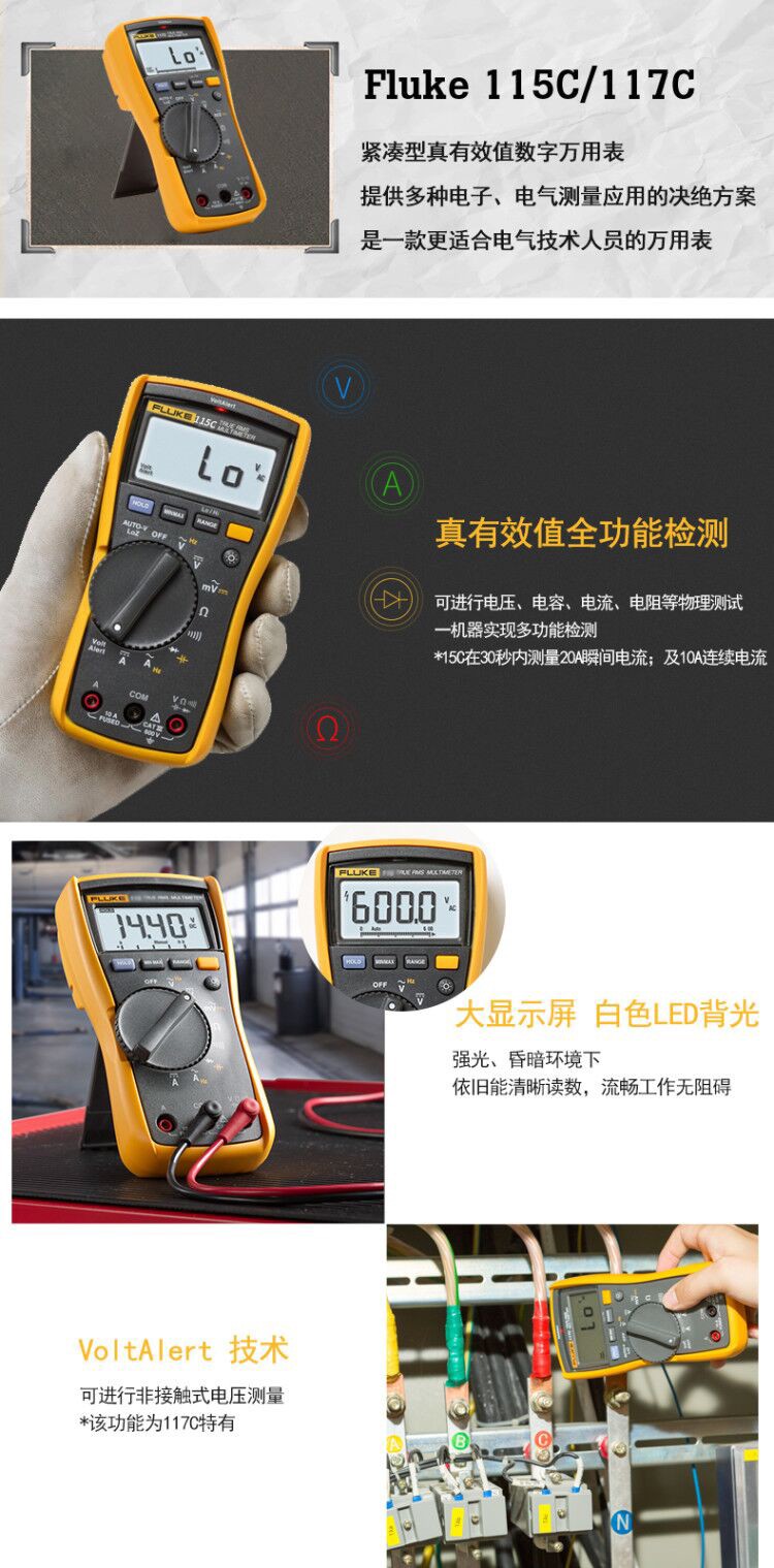 福禄克(FLUKE)115C 真有效值数字万用表 600 V FLUKE-115C 单位:台