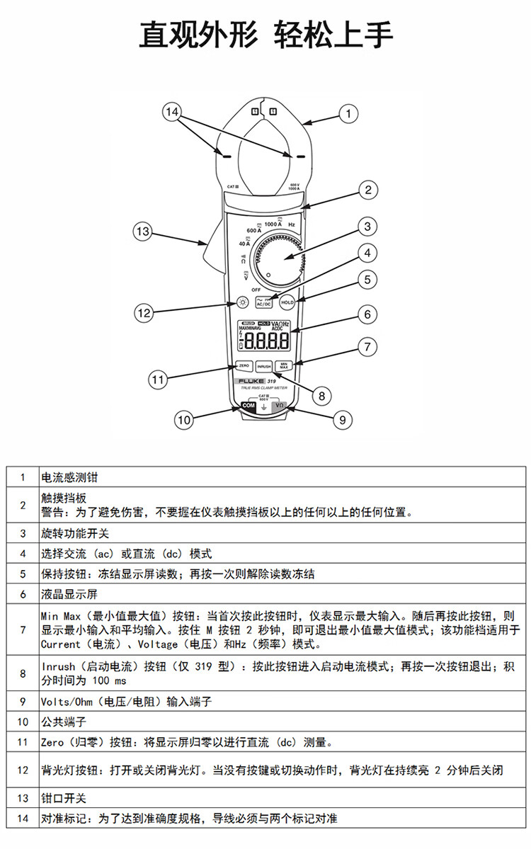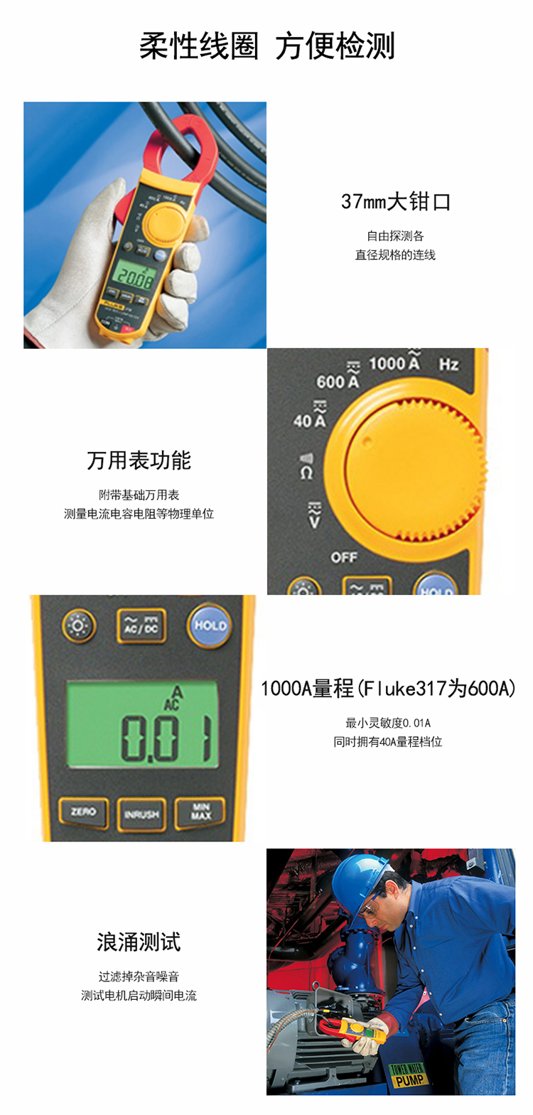福禄克(FLUKE) 317 真有效值交直流数字钳形表 600A FLUKE-317