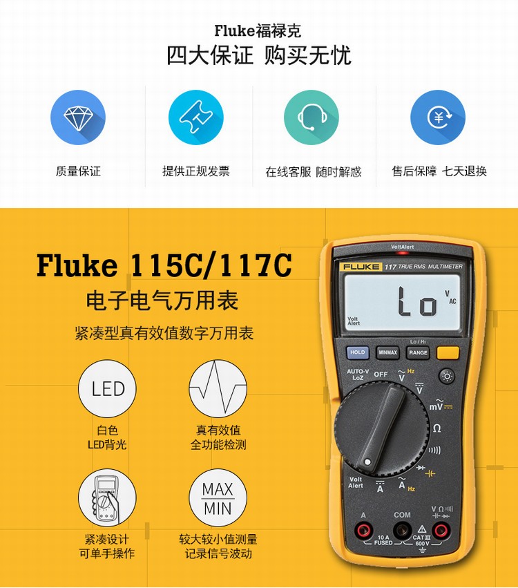 福禄克(FLUKE)117C 非接触式电压测量真有效值万用表 600V FLUKE-117C