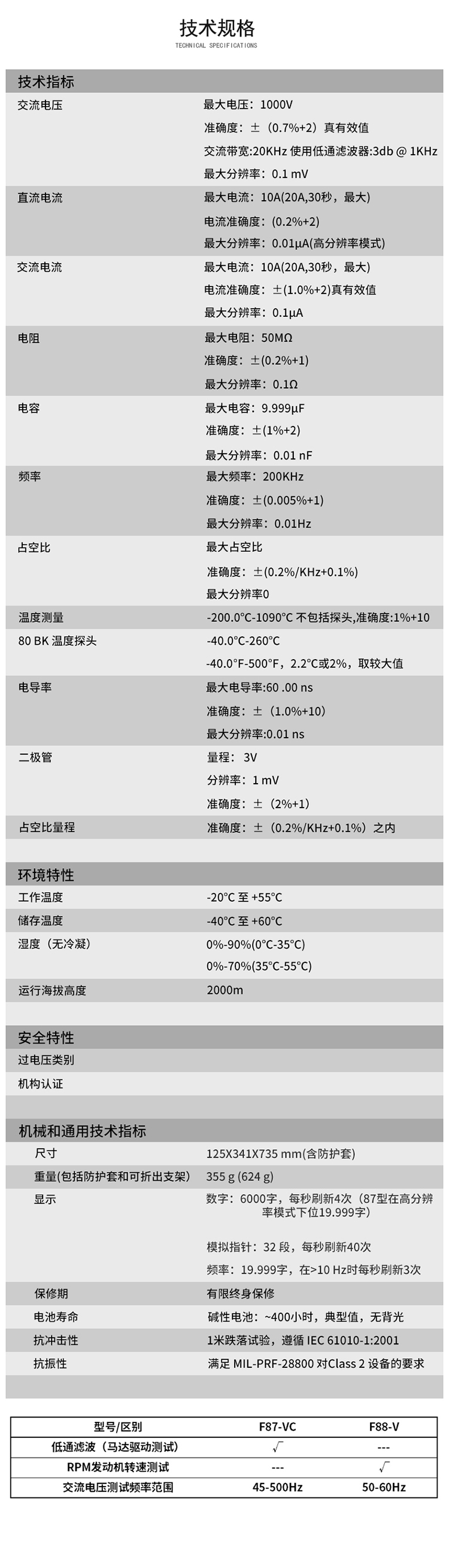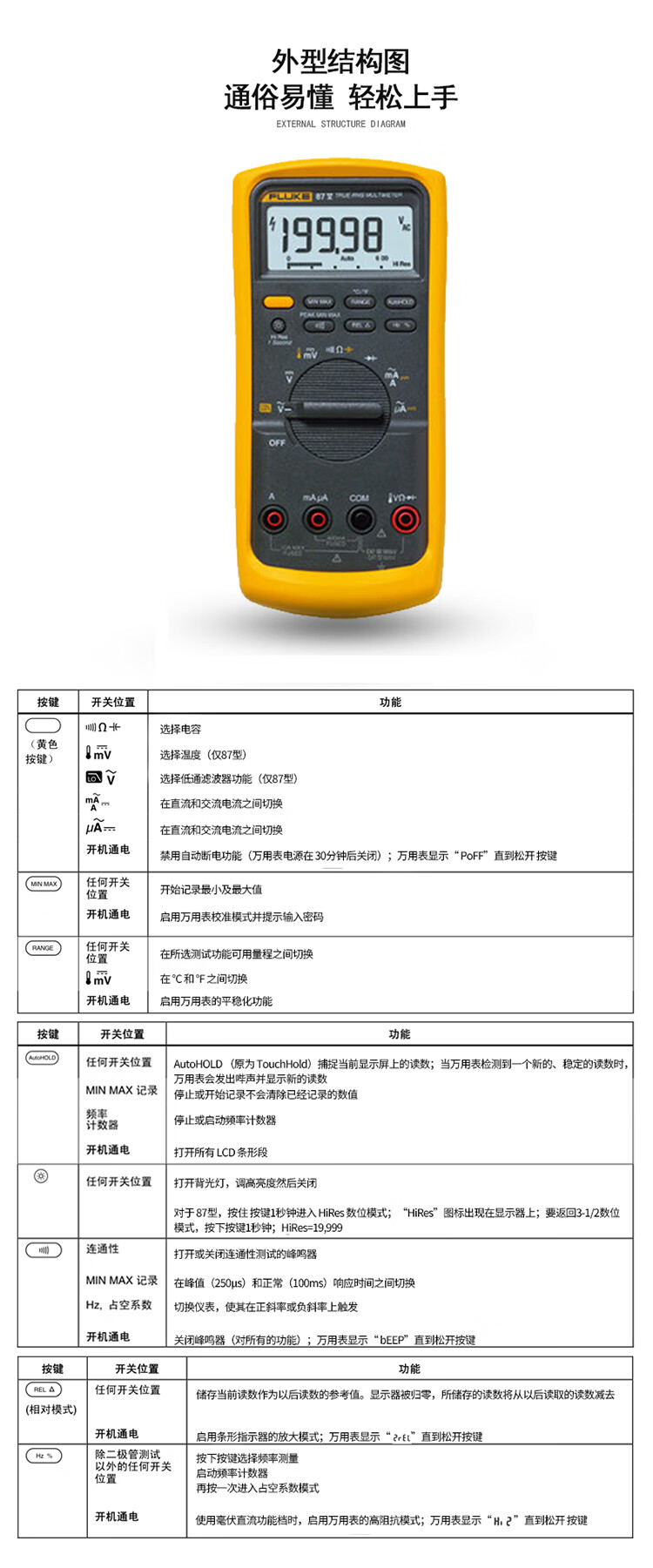 福禄克(FLUKE)F87V 真有效值工业用数字万用表 Fluke 87-V