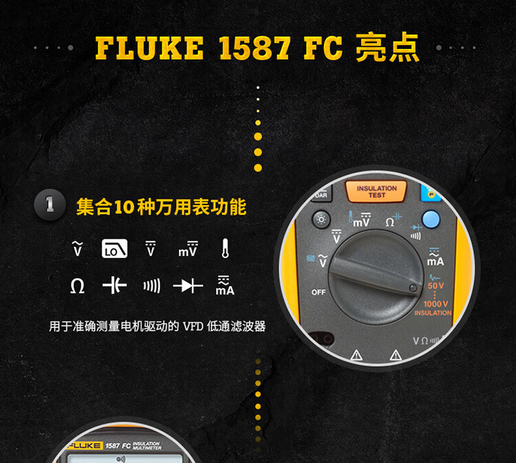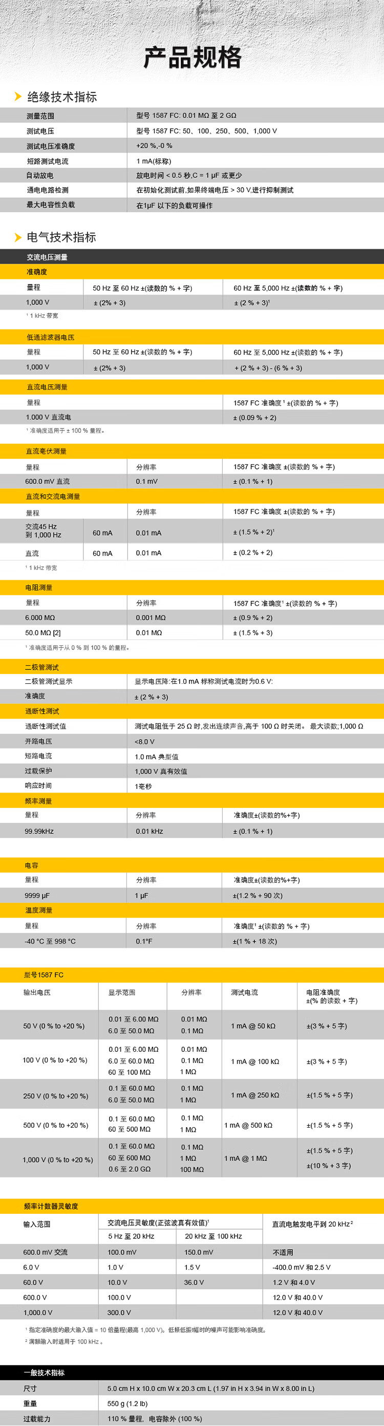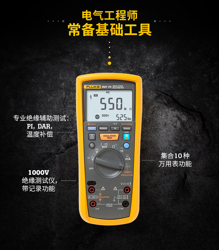 福禄克(FLUKE) 1587C FC 绝缘电阻测试仪 绝缘万用表 1000V 兆欧表 FLUKE-1587 FC/CN