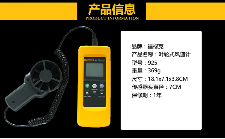 福禄克(FLUKE)F925 叶轮式风速计 0.40至25.00 m/s Fluke 925