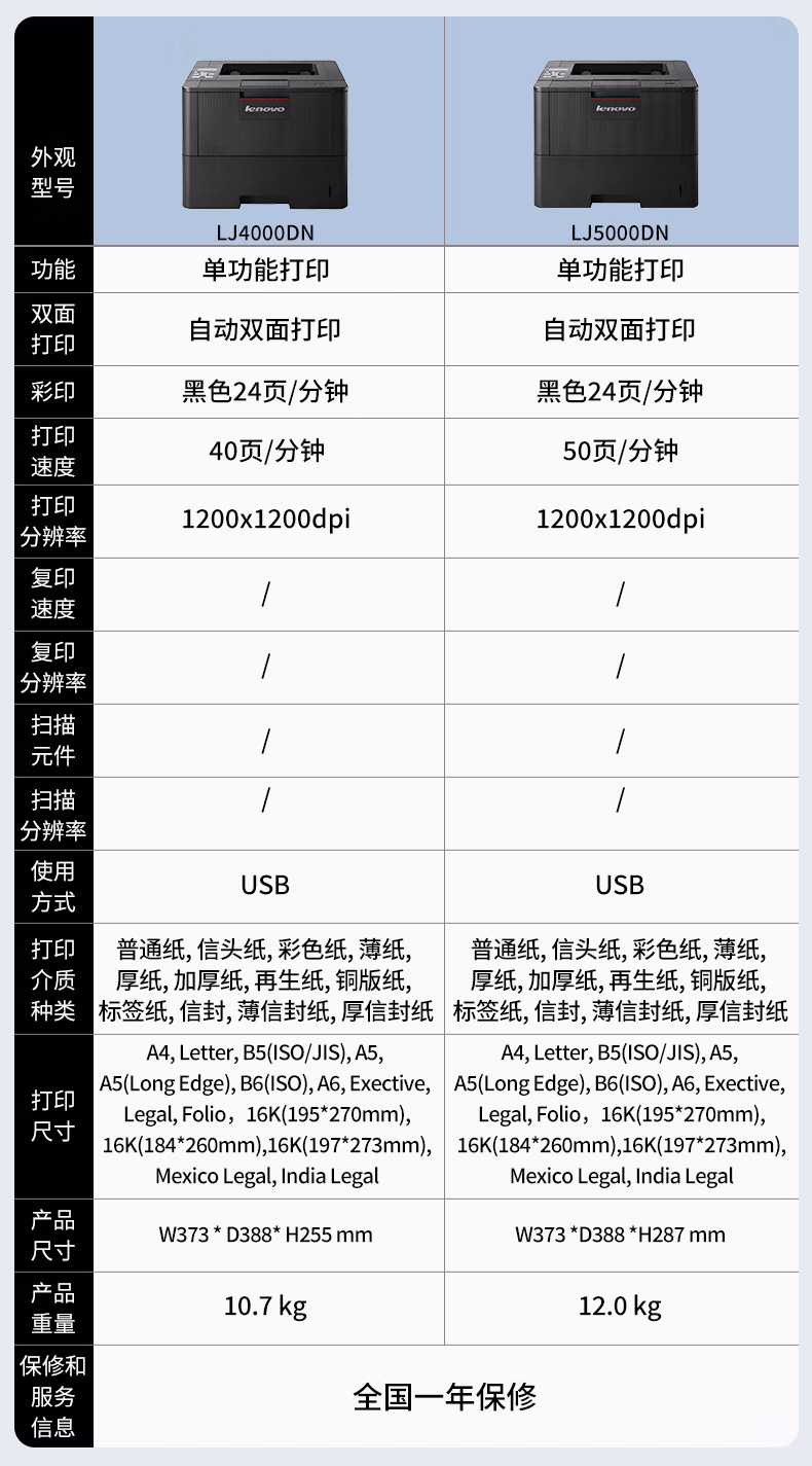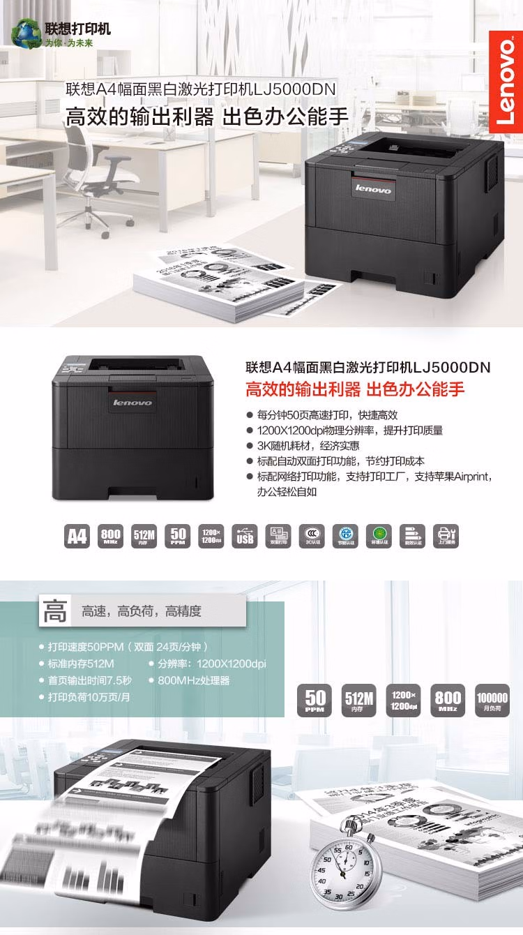 联想(Lenovo) LJ5000DN A4幅面 黑白激光打印机 (计价单位:台) 黑色
