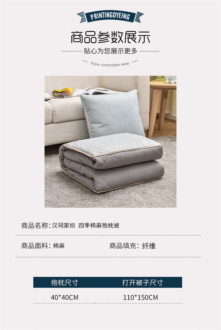 • 商品名称:汉司家纺四季棉麻抱枕被 40*40展开110*150cm (计价单位:件) 草籽绿