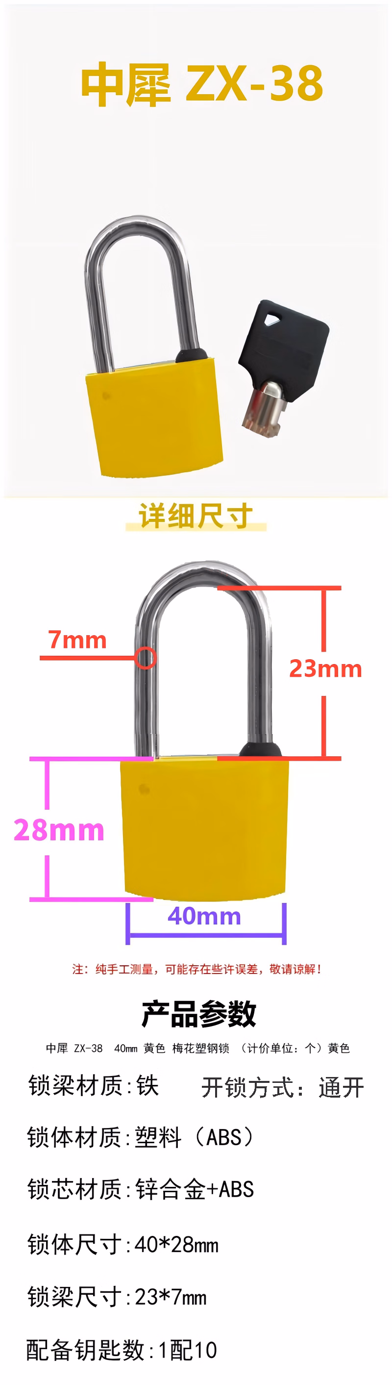 中犀 ZX-38 40mm 梅花塑钢锁 黄色 挂锁 (计价单位:个) 黄色