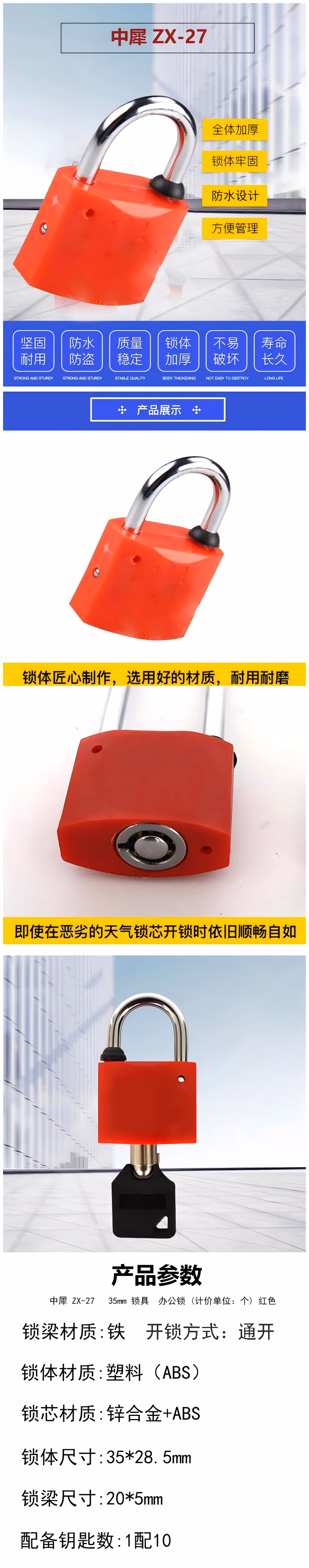 中犀 ZX-27 35mm 挂锁 (计价单位:个) 红色