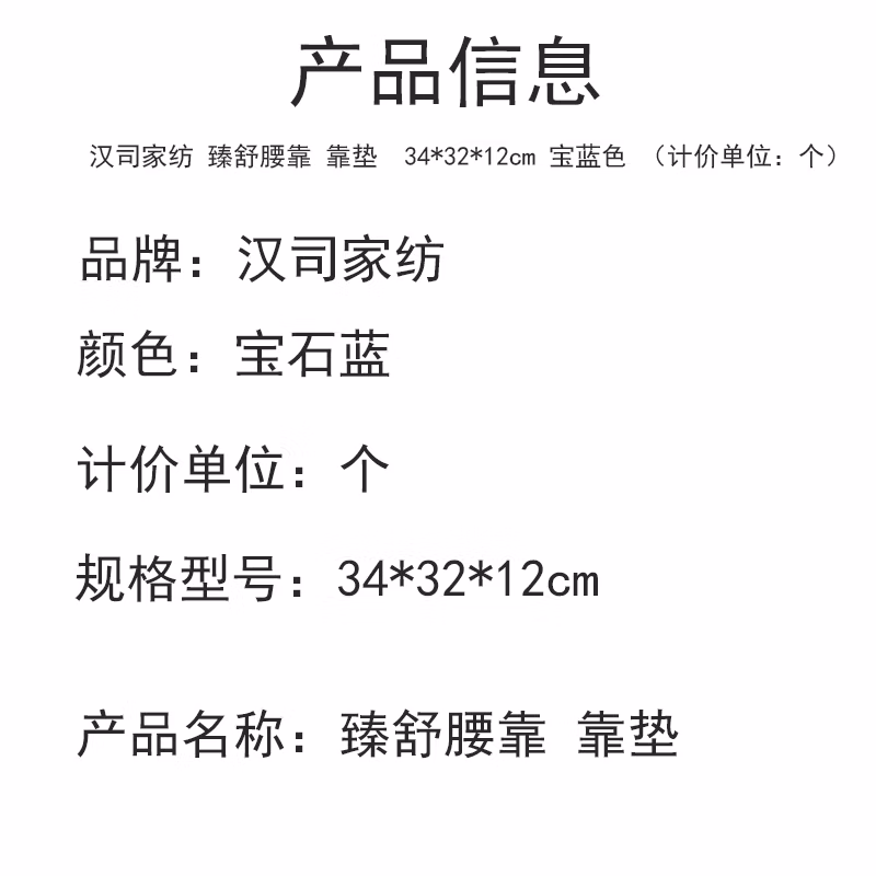 汉司家纺 臻舒腰靠 靠垫 34*32*12cm 靠垫 (计价单位:件) 宝蓝色
