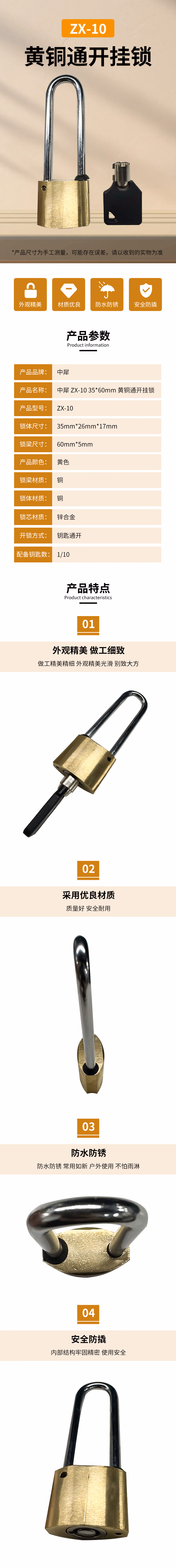 中犀 ZX-10 35mm*60mm 黄铜通开 挂锁 1.00 个/把 (计价单位:把) 黄色