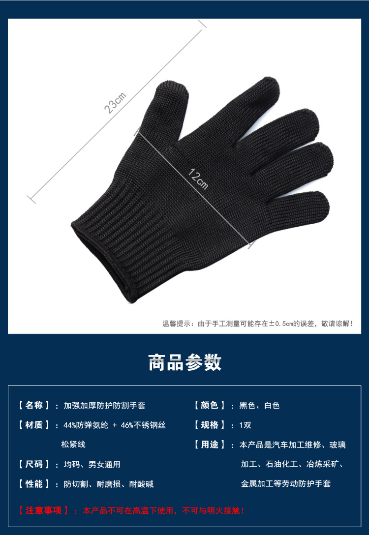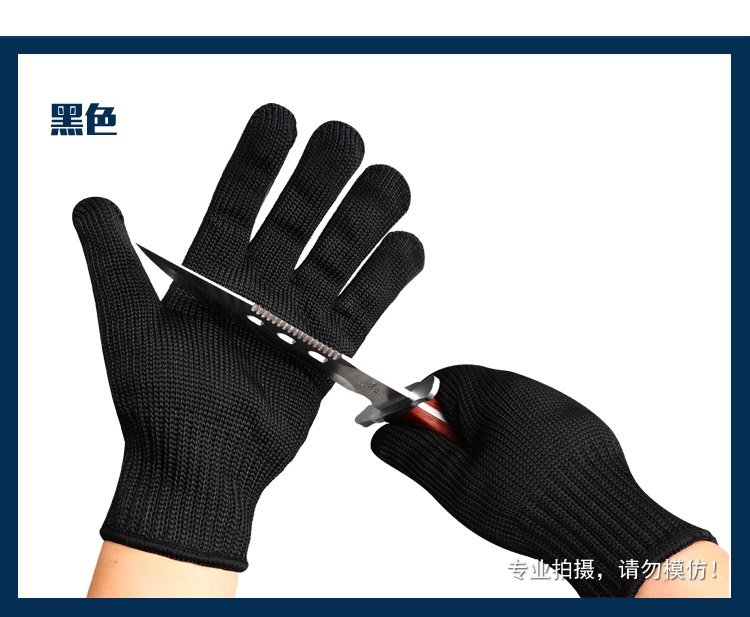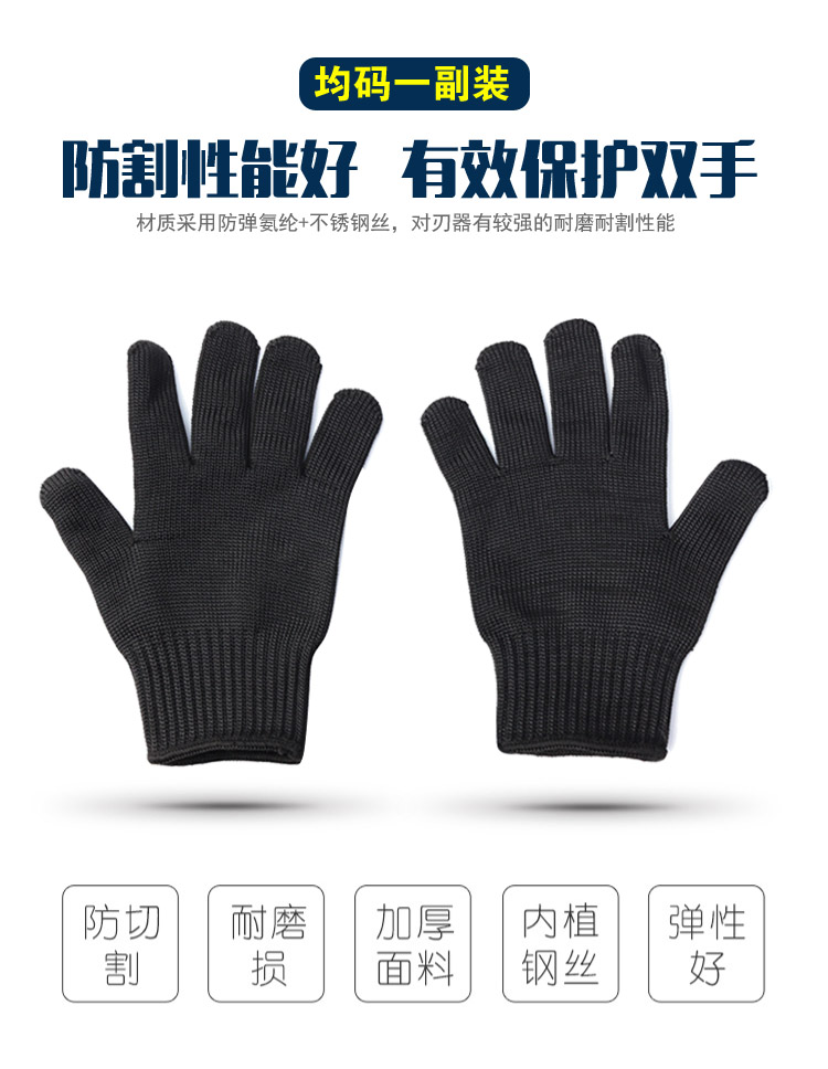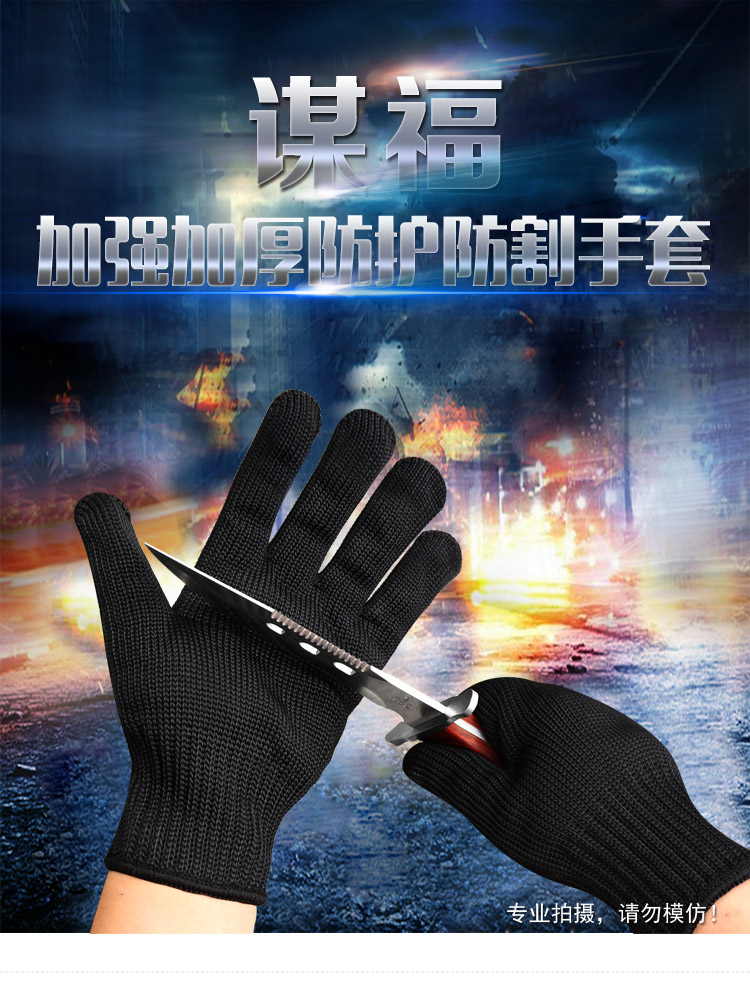 谋福CNMF 防割手套防刺手套防身防护钢丝手套 防割户外登山战术手套 劳保用品(黑色防割款 均码)