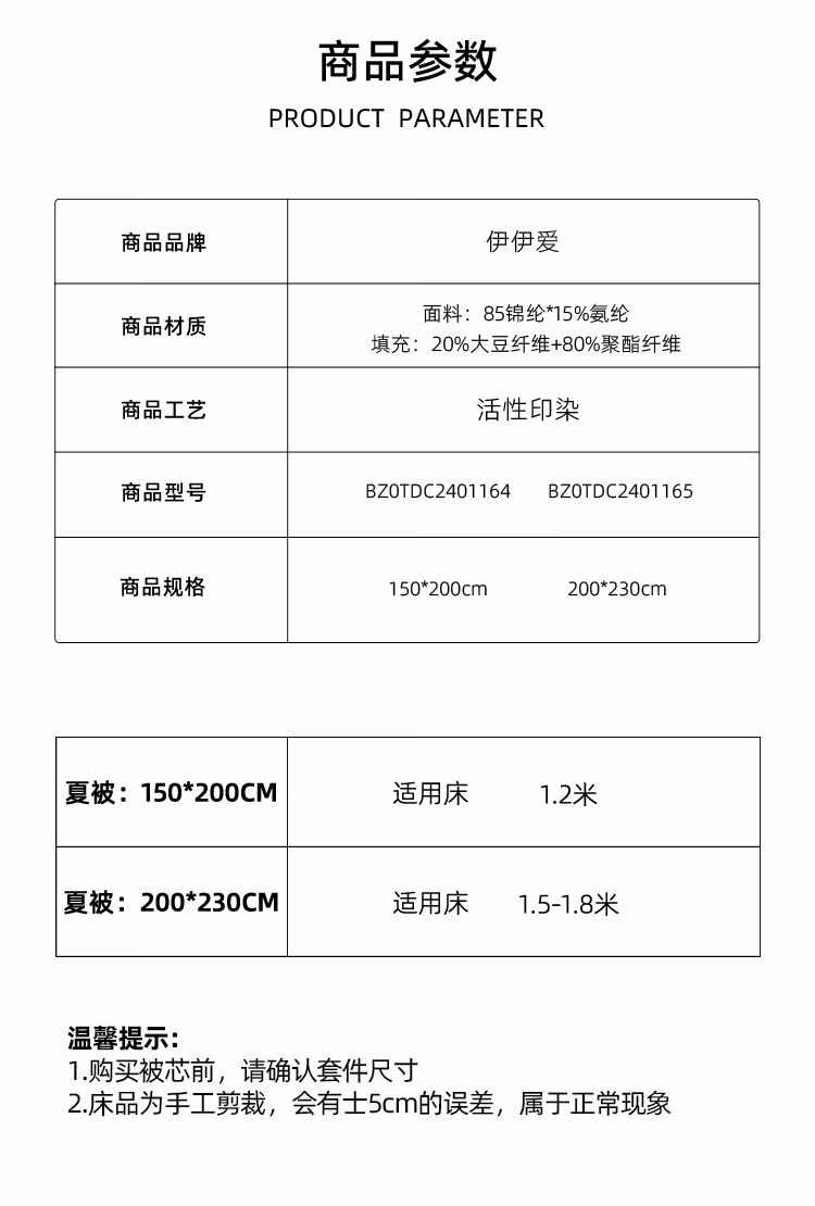 • 商品名称:伊伊爱凉感锦氨(160克)20大豆夏被 浅天兰+奶黄/BZ0TDC2401164 150*200cm/2.6斤