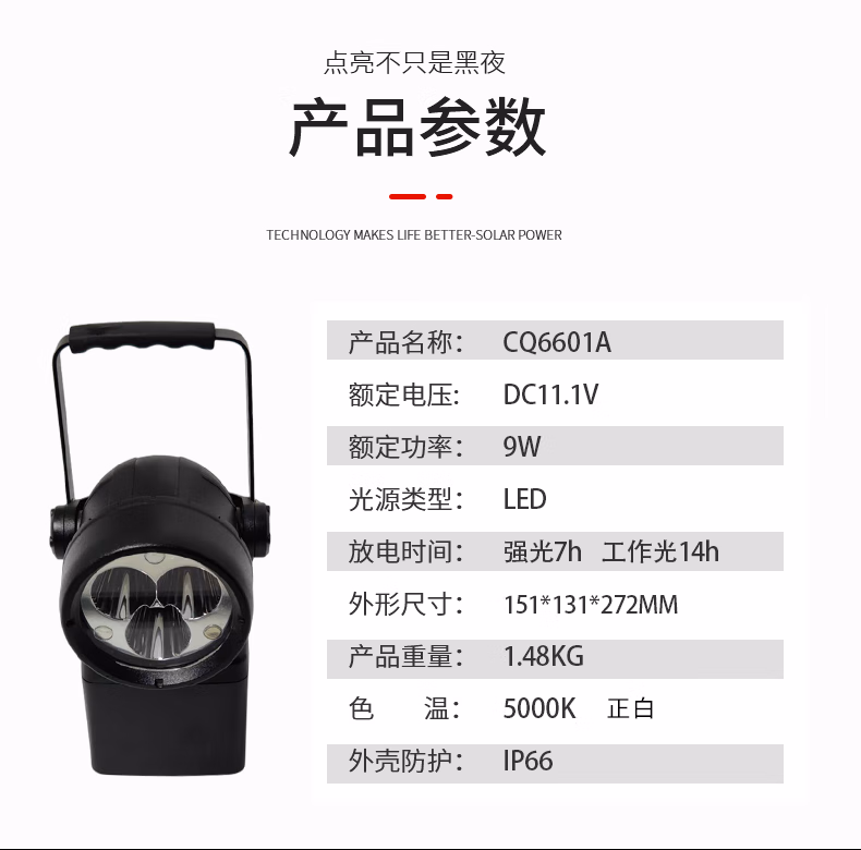 旭升(CXS) CQ6601A 9W IP66 强光7h 工作光14h DC11.1V 白光 色温5000K 手提探照灯 (计价单位:盏) 黑色