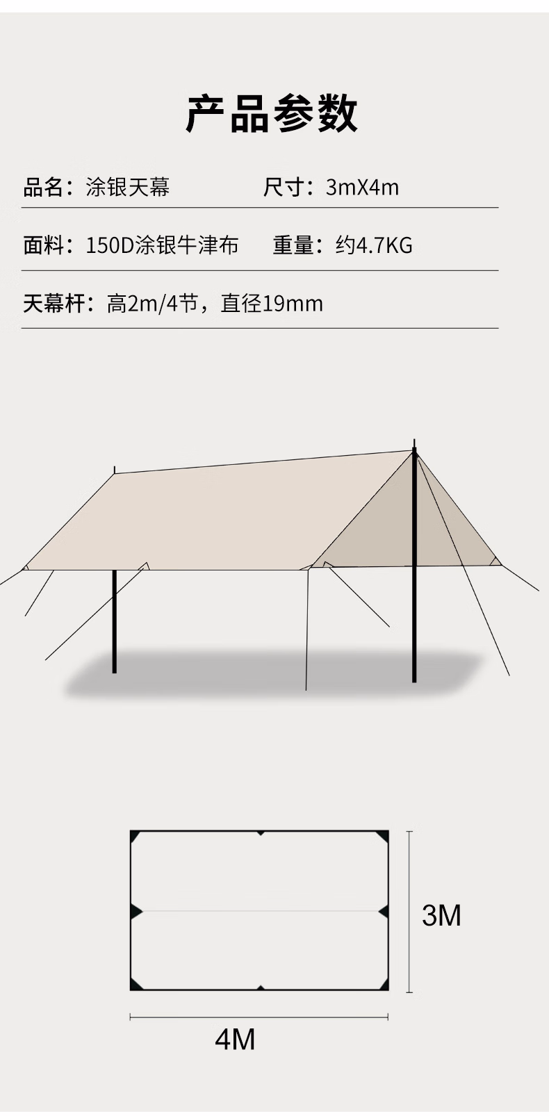 三极户外(Tri-Polar) TP2384 3*4m 防雨遮阳棚布 1.00 顶/个 (计价单位:个) 米白