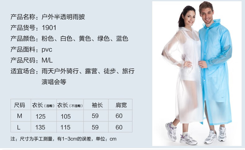 三极户外(Tri-Polar) TP1901 户外便携雨披半透明 雨衣 12.00 件/包 (计价单位:包) 白色