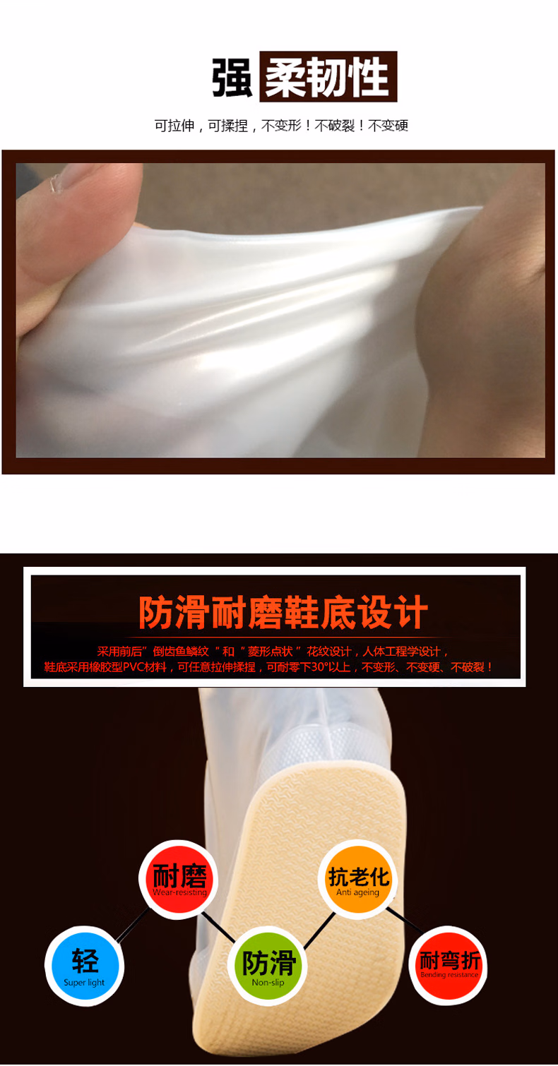 • 商品名称:Tri-polar 男女雨天防水防滑鞋套下雨脚套加厚耐磨硅胶儿童男雨靴套 TP1907 银白色1双装 L