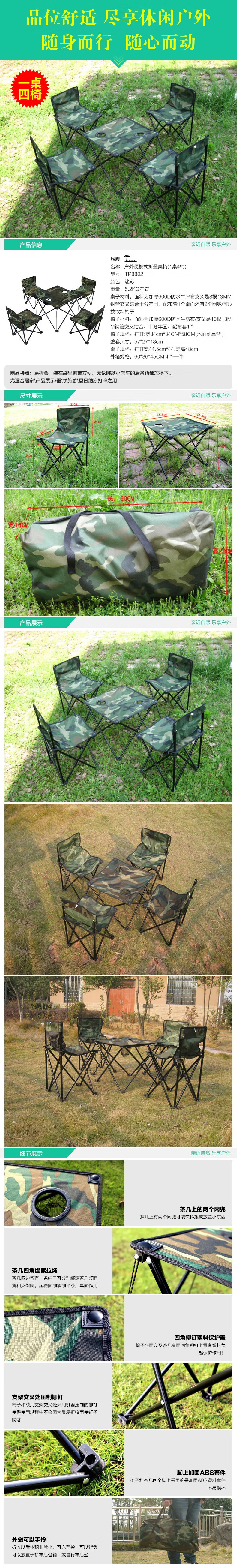 三极户外(Tri-Polar) TP8802折叠桌椅自驾游公园休闲便携凳子野外钓鱼沙滩折叠桌椅子1桌4椅 午休椅 (计价单位:把) 迷彩色