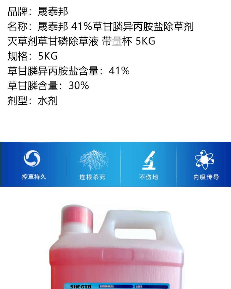 晟泰邦 除草剂灭草剂草甘磷除草液 带量杯 5KG 1瓶 单位:瓶