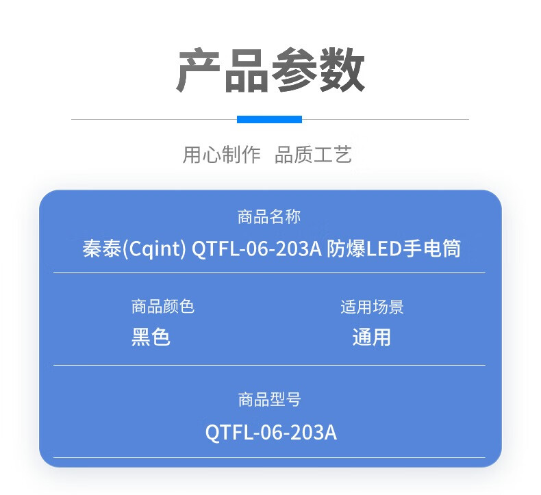 秦泰(Cqint) QTFL-06-203A 3W Ex ib IIC T6 Gb DC3.7V 300流明 续航5小时 射程200m Φ26×Φ34×150mm 可充电 冷光 防爆LED手电筒 (计价单位:个) 黑色