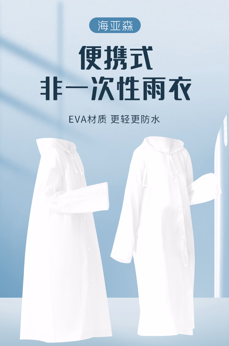 海亚森 TK-5010 长款均码 加厚款EVA 雨衣 (计价单位:件) 白色