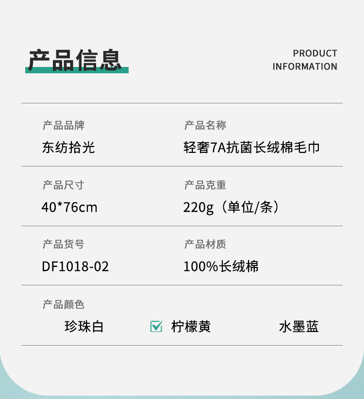 东纺拾光 DF1018-02 40*76cm 毛巾 (计价单位:条) 柠檬黄