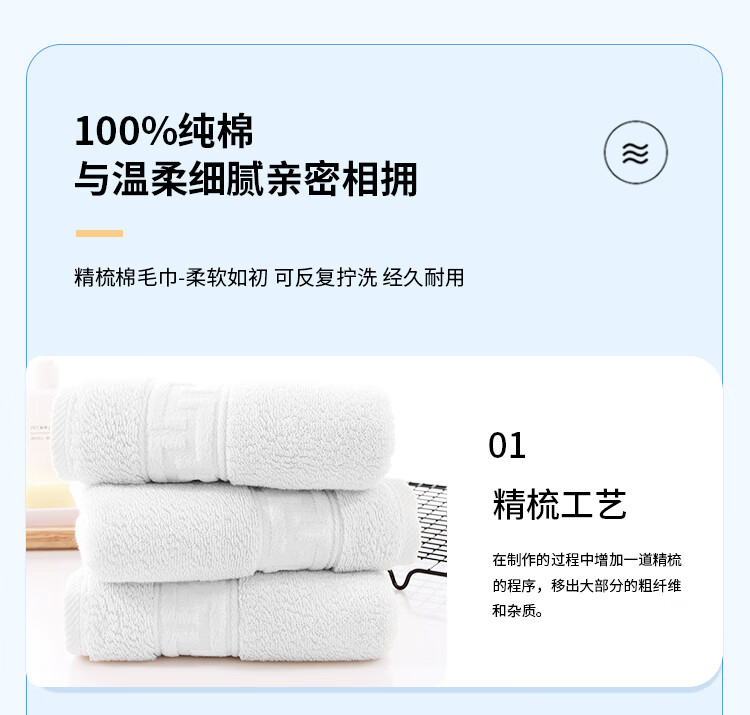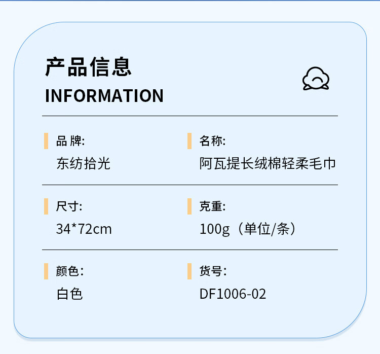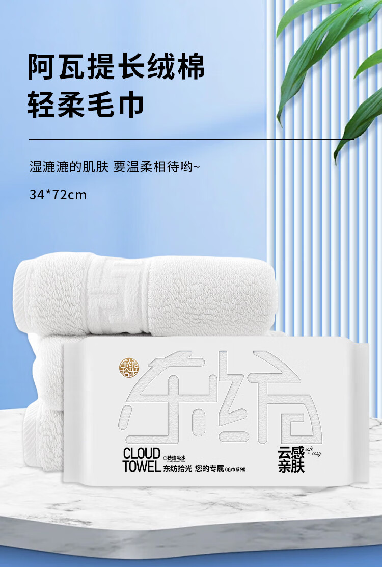 • 商品名称:东纺拾光阿瓦提长绒棉轻柔毛巾34*72cm 100g 白色