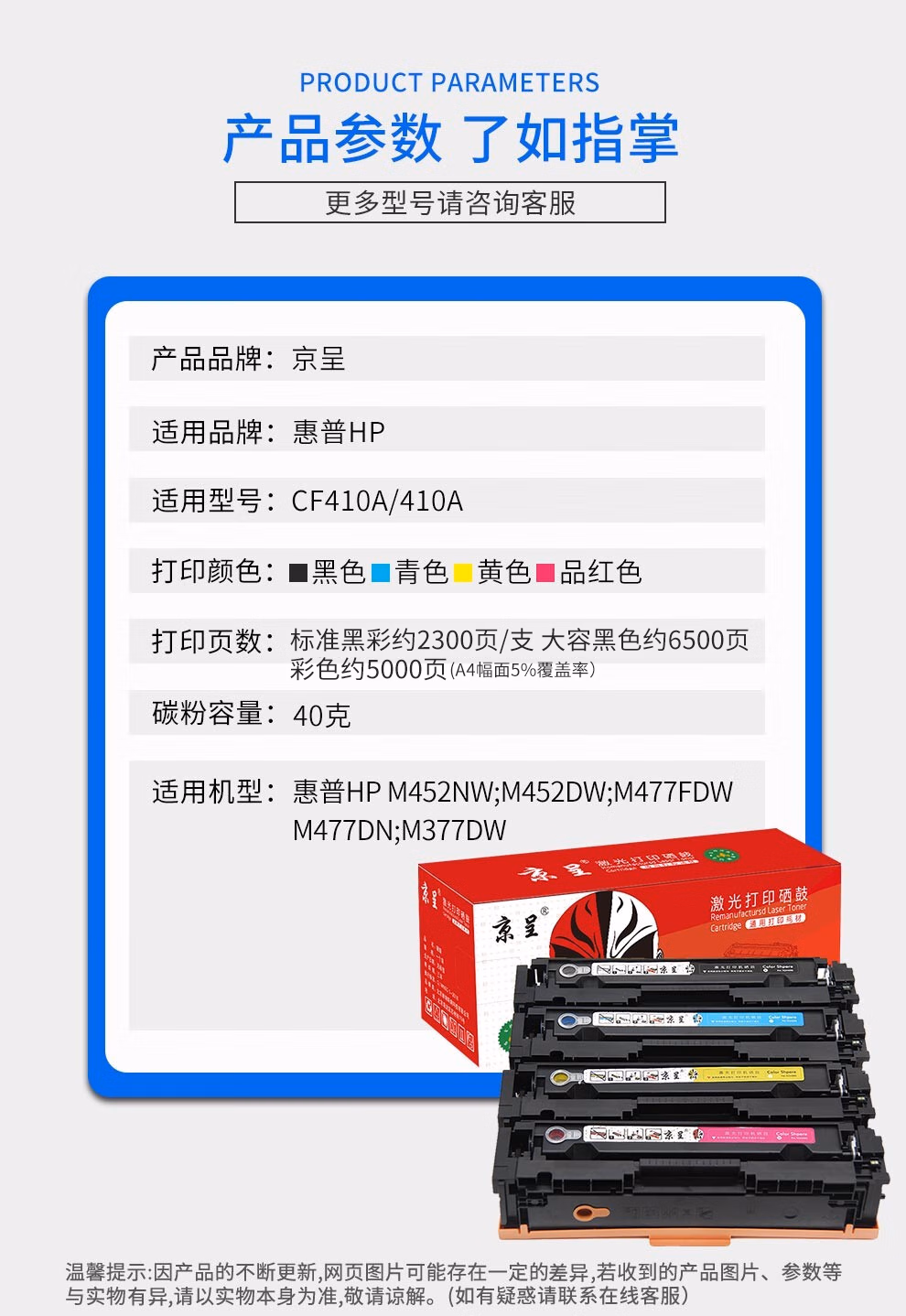 京呈 CF410A 硒鼓 带芯片 2300页 适用惠普HP Color LaserJet Pro M452dw/452nw/M477fdw/M377dw等 硒鼓 (计价单位:只) 黑色