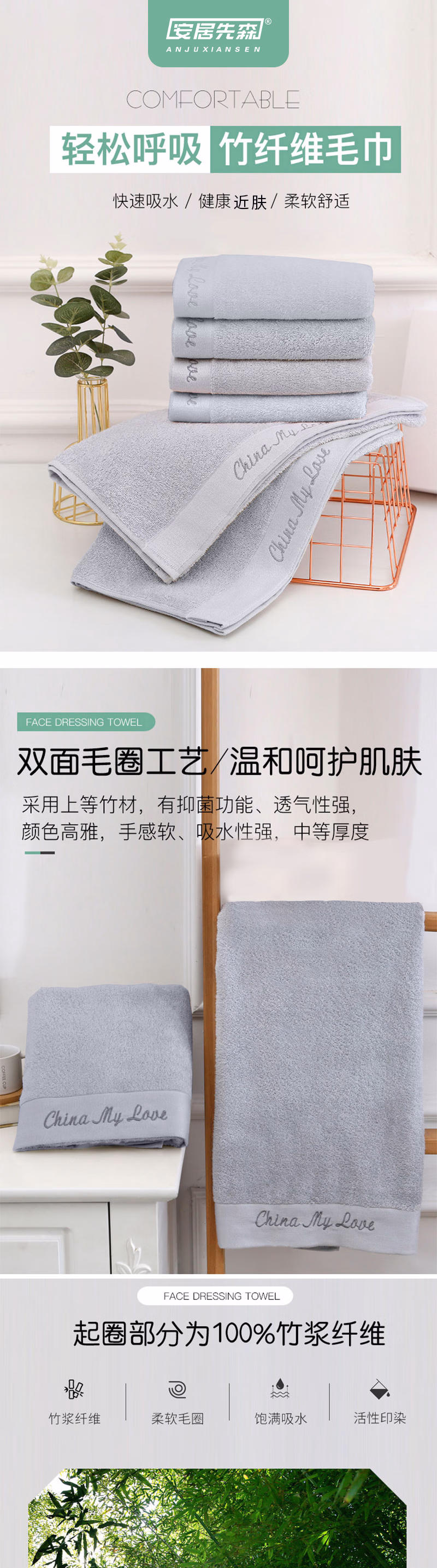 安居先森 an2402034 34*76cm 毛巾 (计价单位:条) 中灰蓝