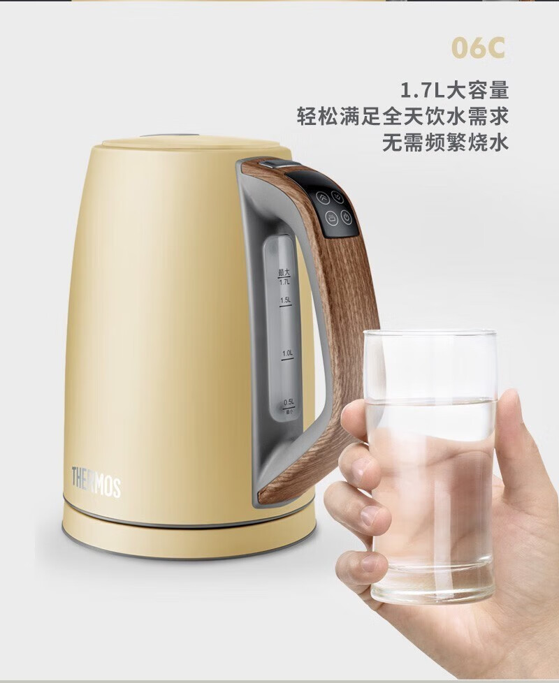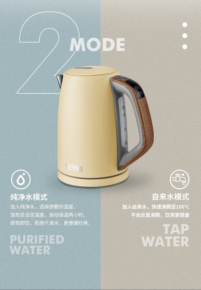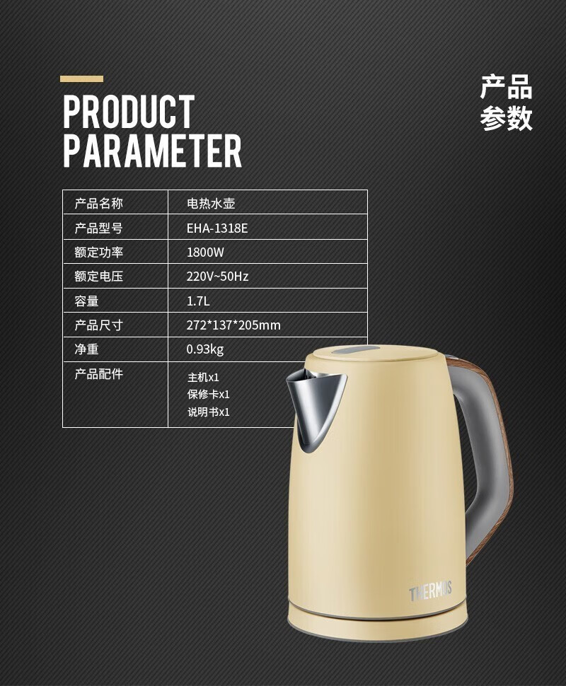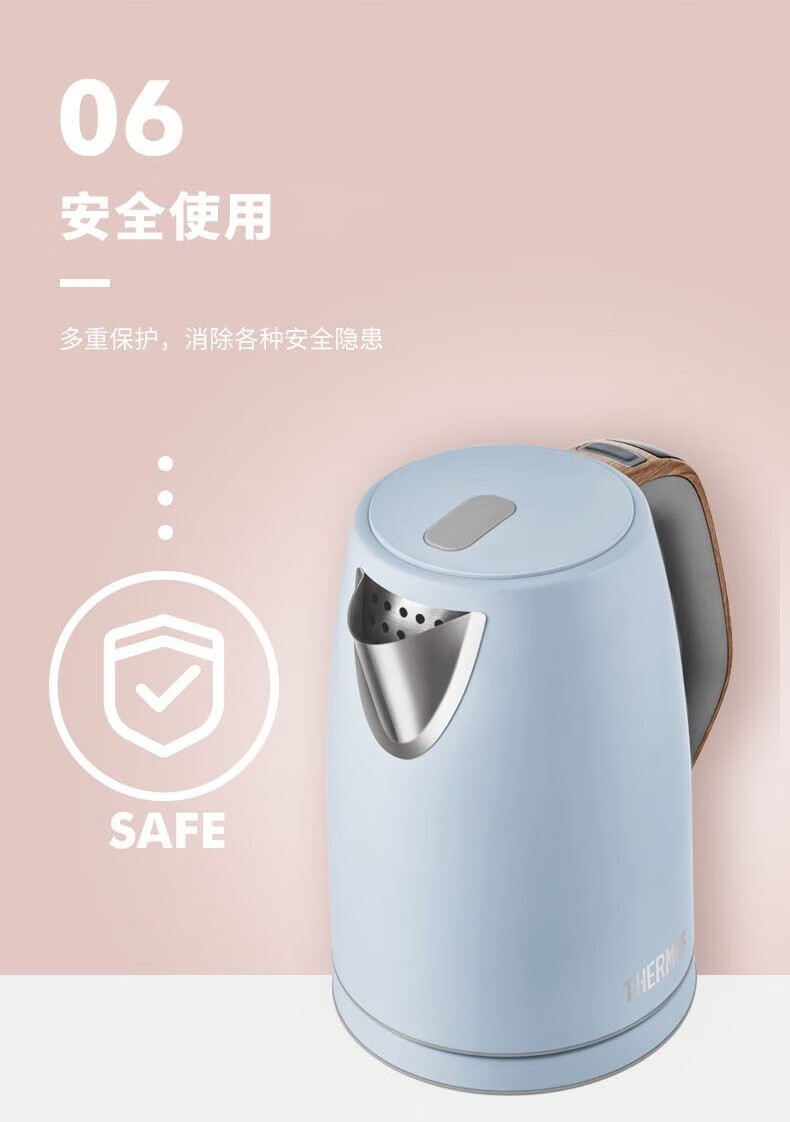 膳魔师(THERMOS) 电水壶热水壶1.7L大容量家用烧水壶一键保温开水壶恒温水壶带刻度 EHA-1318E 蓝色 单位:个