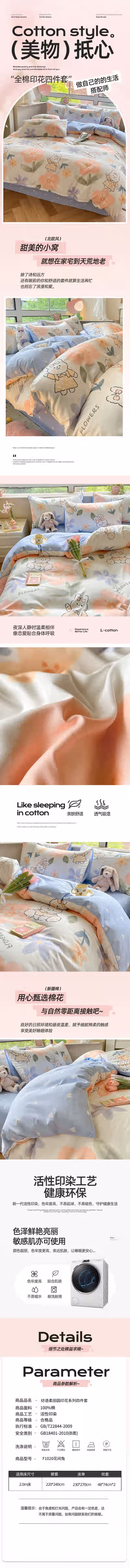 纺语柔 F1020 四件套 床上套件 (计价单位:套) 花间兔