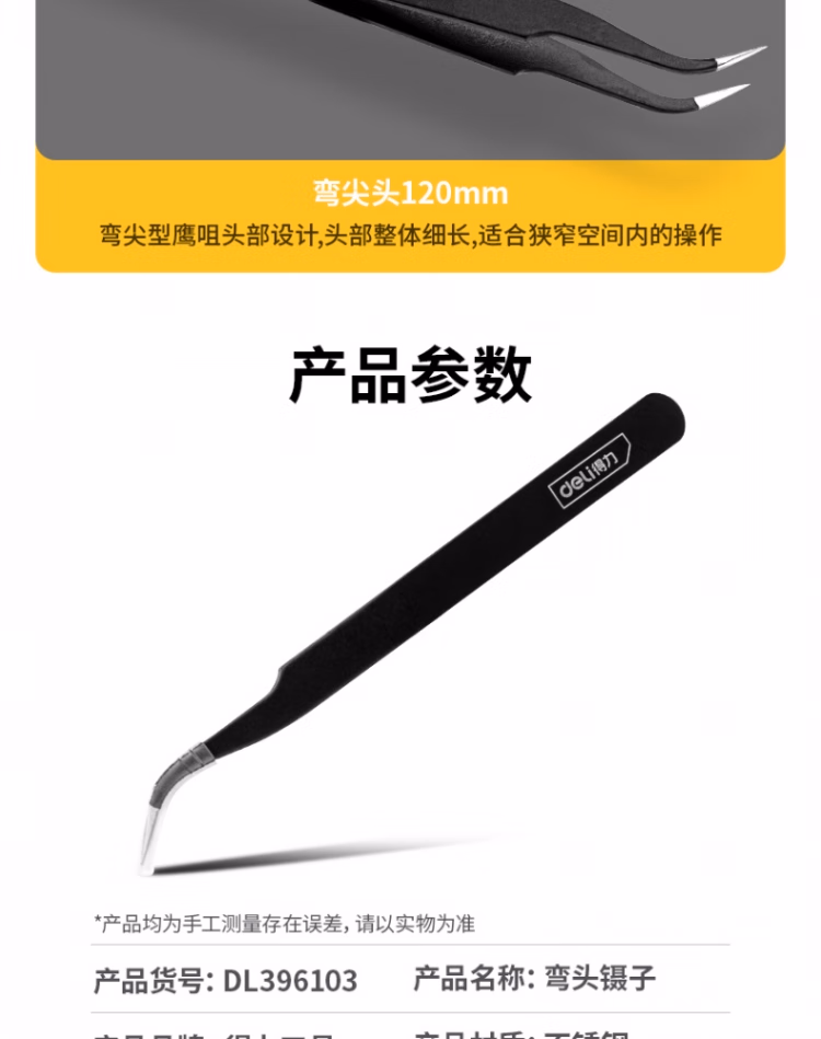得力工具 DL396103 镊子 (计价单位:把) 黑色