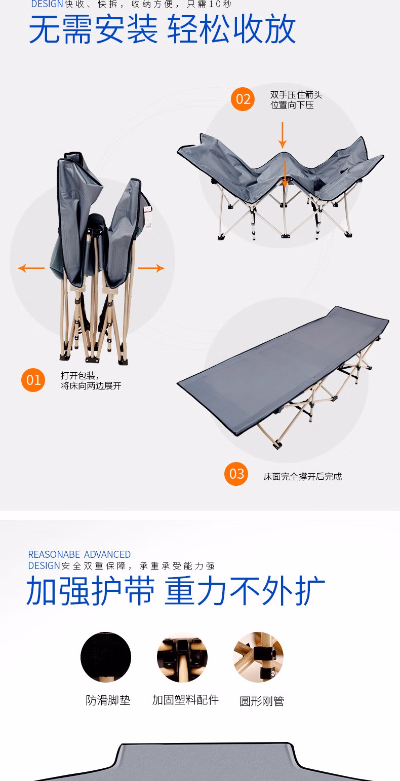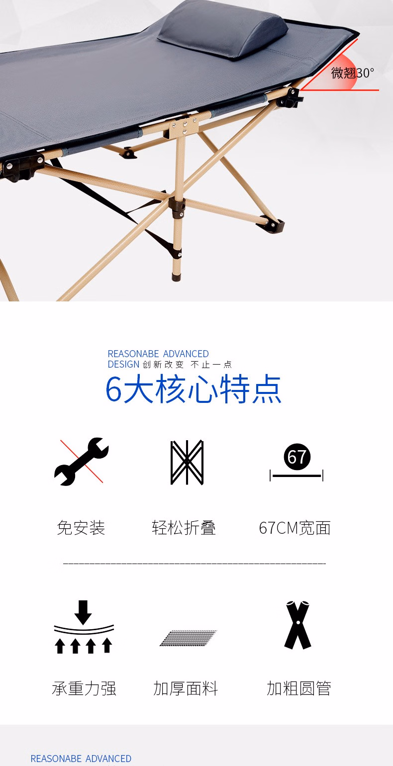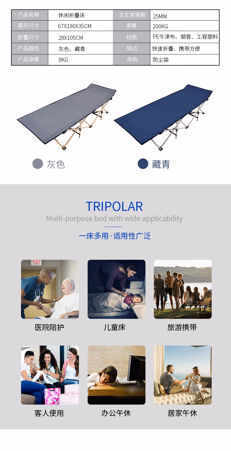 三极户外(Tri-Polar) TP1108办公休闲单人折叠床免安装午休简易床190x67x35cm 午休椅 (计价单位:把) 藏青色