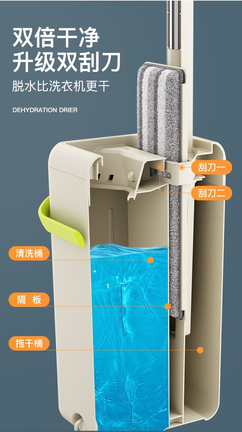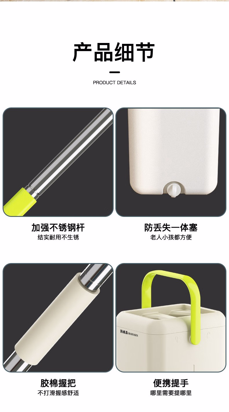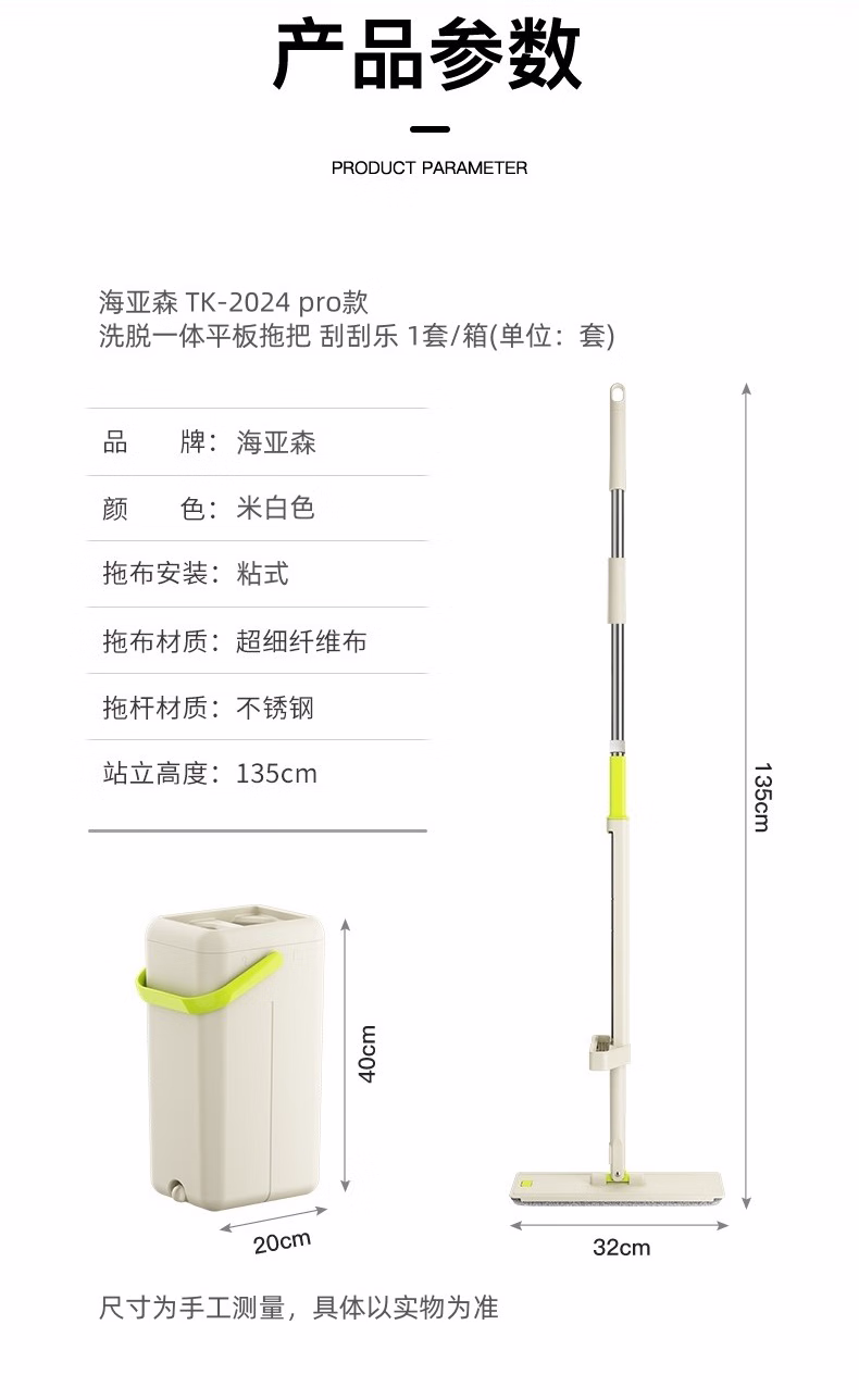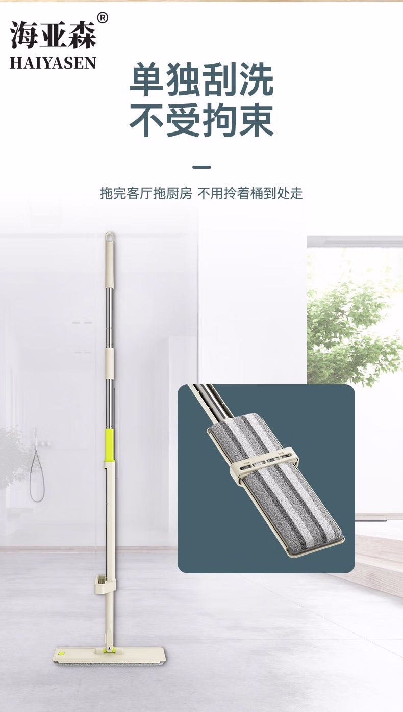 海亚森 TK-2024 pro款 拖把135*32cm 桶身40*20cm洗脱一体平板 刮刮乐 拖把 1.00 把/套 (计价单位:套) 灰色