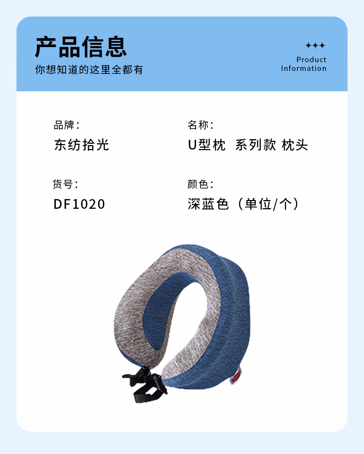 东纺拾光 U型枕 DF-1020 枕套 系列款 枕头 1.00 件/个 (计价单位:个) 多色