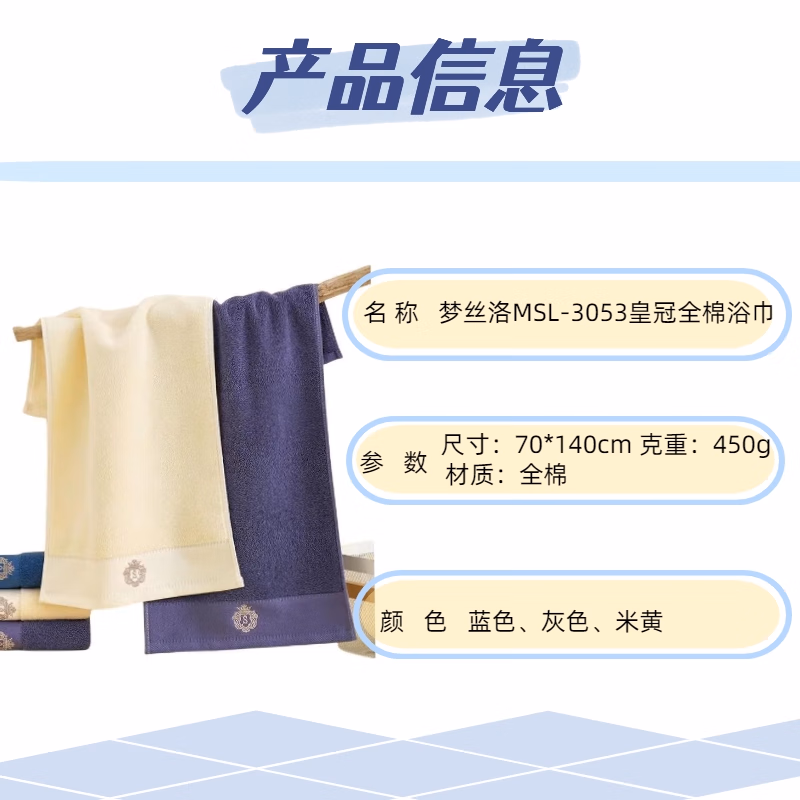 梦丝洛 MSL-3053 皇冠全棉浴巾 毛巾 (计价单位:条) 蓝色