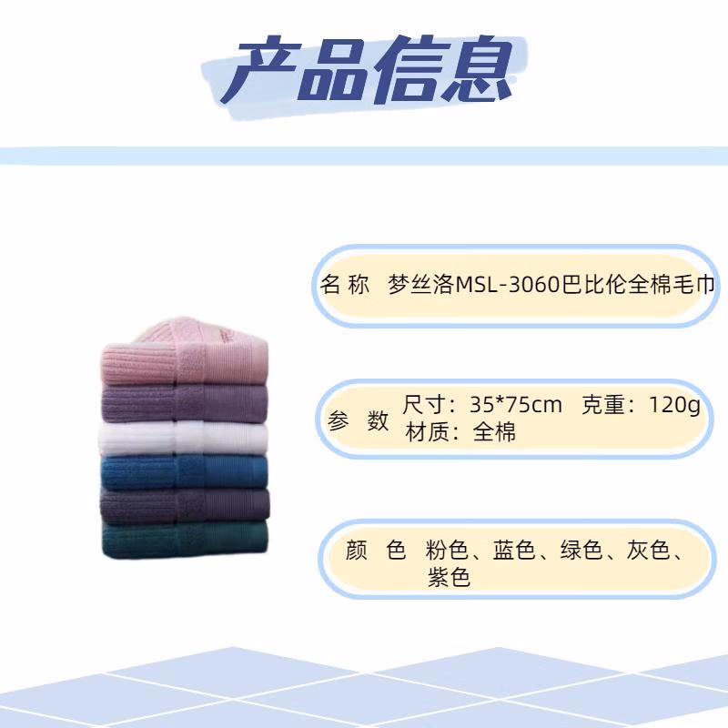 梦丝洛 MSL-3060 35*75cm 120g 巴比伦全棉 毛巾 (计价单位:条) 粉色