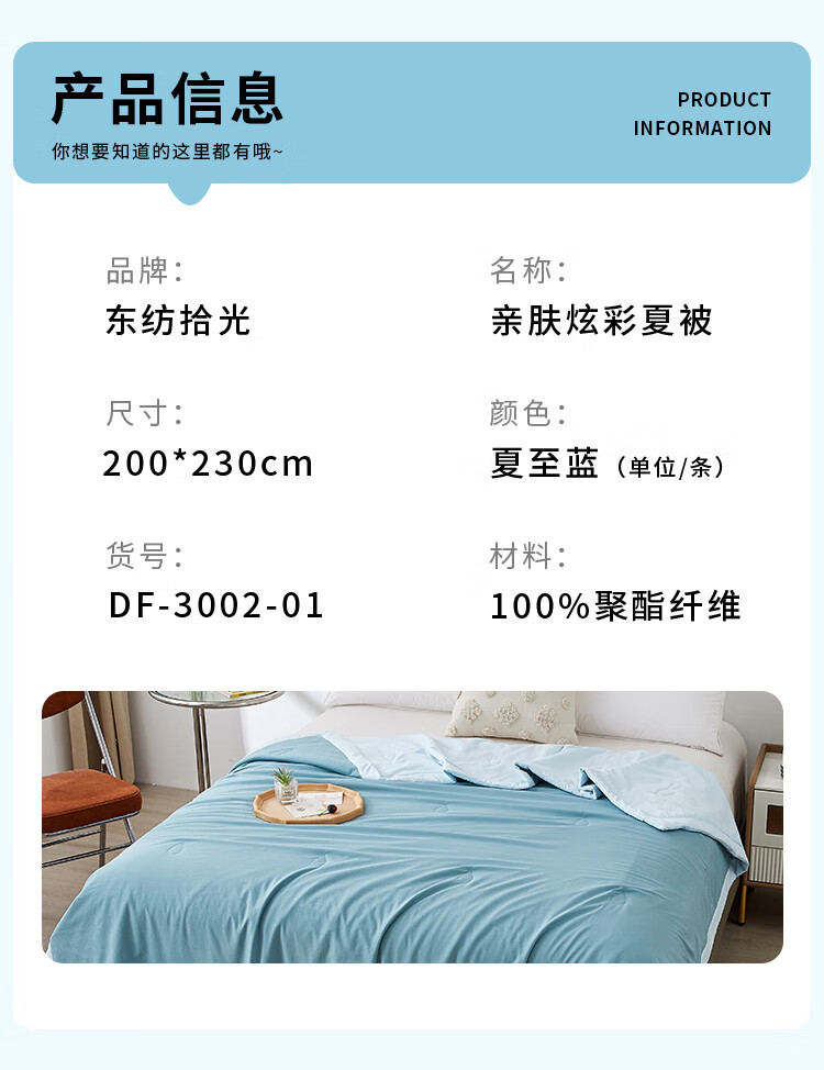 东纺拾光 DF3002-01 200*230cm 被子 1.00 件/条 (计价单位:条) 夏至蓝