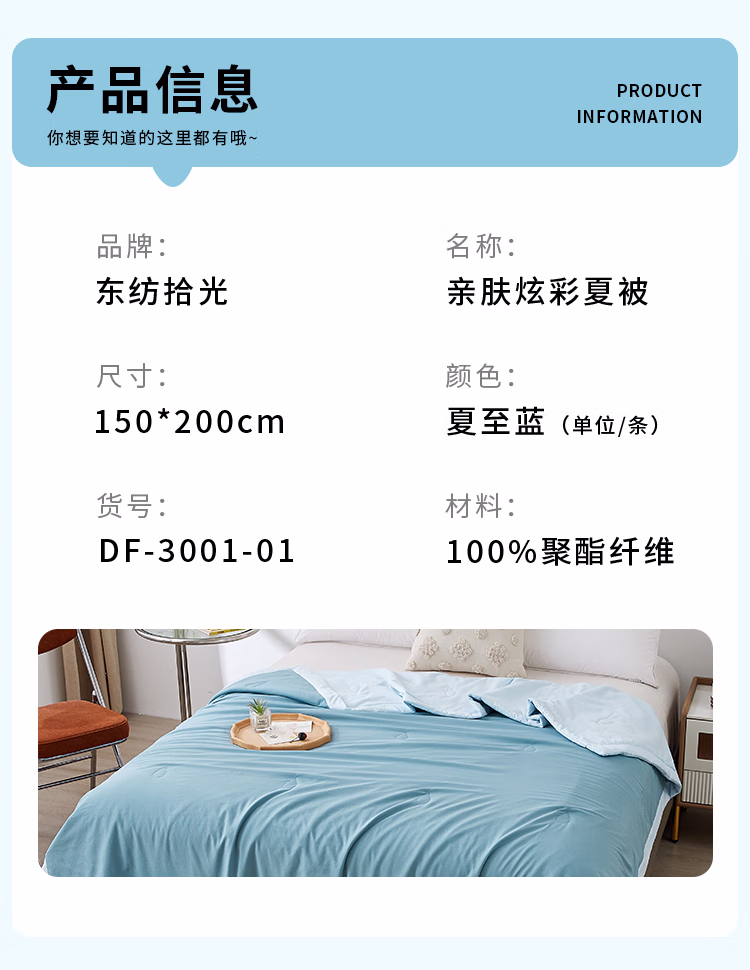 东纺拾光 DF3001-01 150*200cm亲肤炫彩夏被 被子 1.00 件/条 (计价单位:条) 夏至蓝