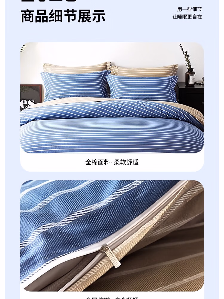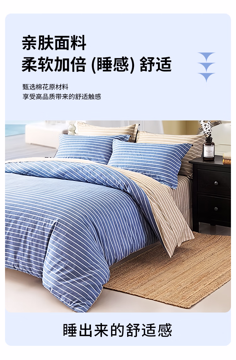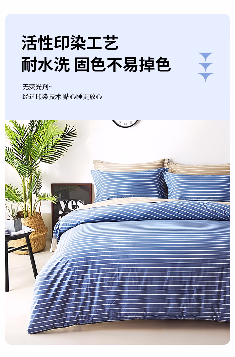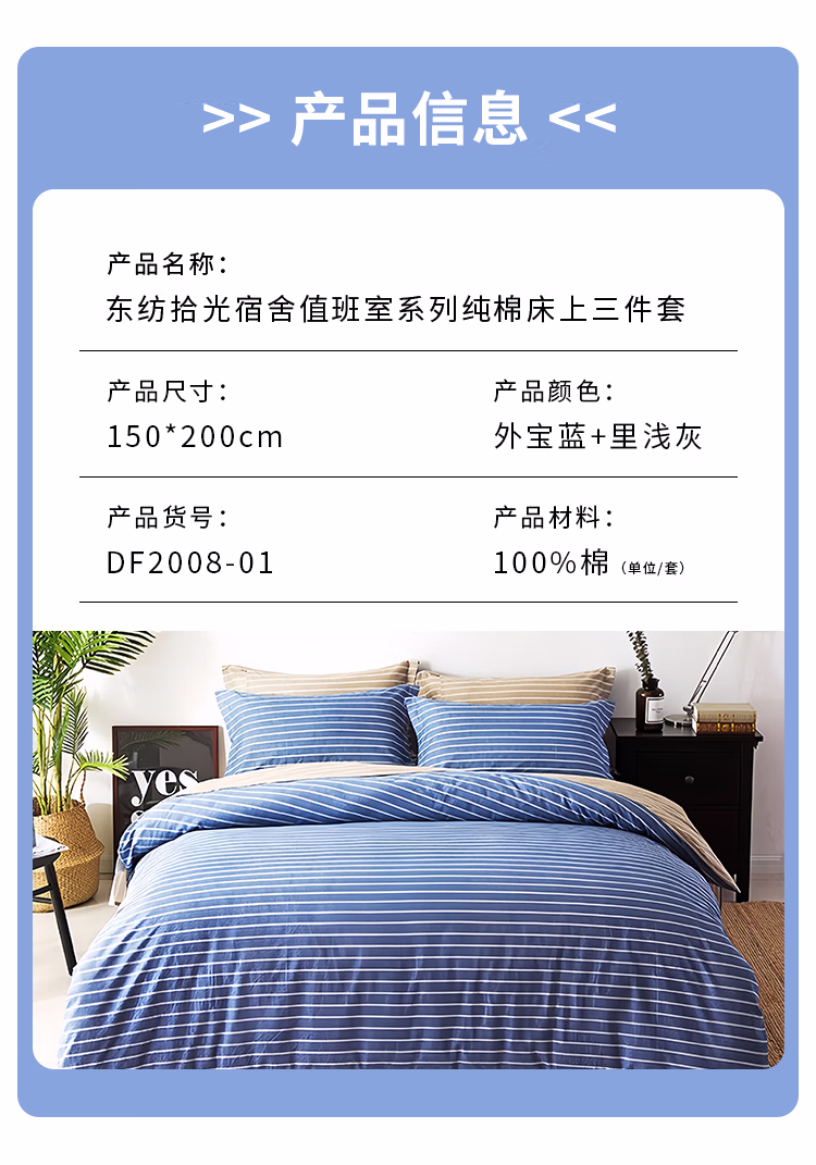 东纺拾光 DF2008-01 150*200cm 宿舍值班室系列纯棉床上三件套 床上套件 (计价单位:套) 外宝蓝+里浅灰