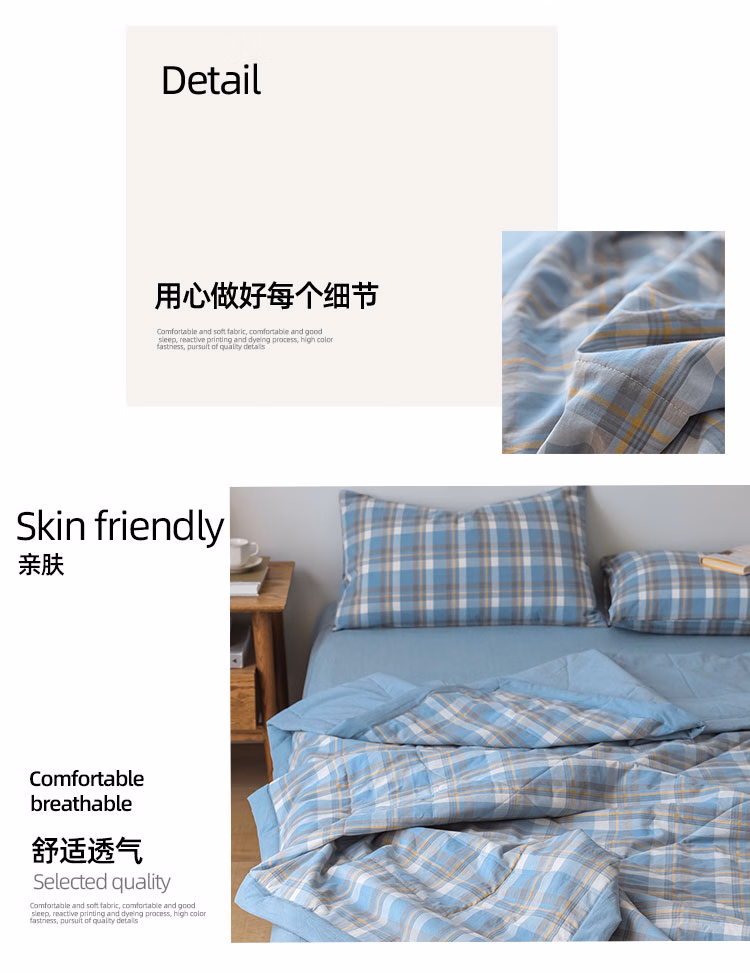 伊伊爱 BZ0BOL2401152 150*200cm 色织水洗棉夏被 被子 1.00 件/条 (计价单位:条) 简兮蓝