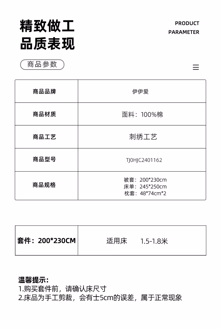 伊伊爱 TJ0HJC2401162 200*230cm 100支时尚绣花款何蒙莎系列四件套 床上套件 (计价单位:套) 何蒙莎(丁香褐)