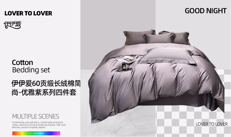 伊伊爱 TJ0KY02302048 200*230cm 贡缎60长绒棉简尚四件套 床上套件 (计价单位:套) 优雅紫