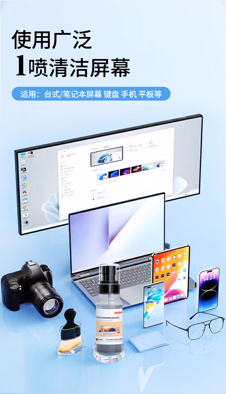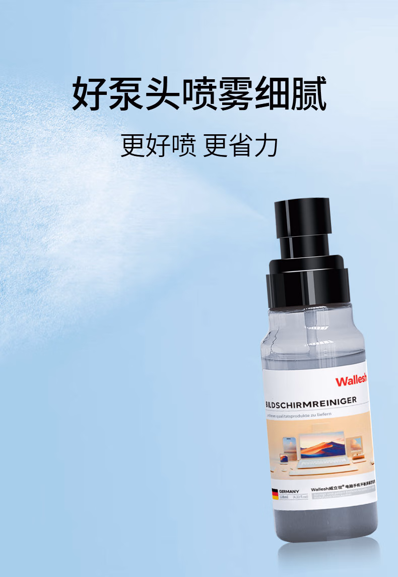 • 商品名称:威立世Wallesh电脑手机平板屏幕清洁剂128ml 电视键盘眼镜清洁 清洁