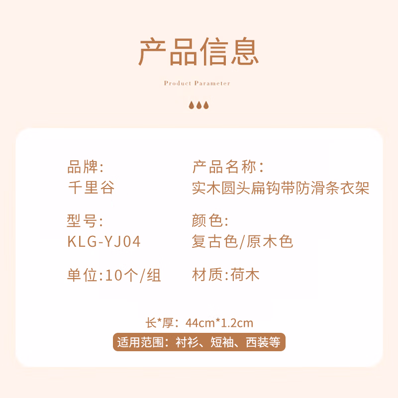千里谷 KLG-YJ04 带防滑条 复古色 衣架 10.00 个/组 (计价单位:组) 复古色