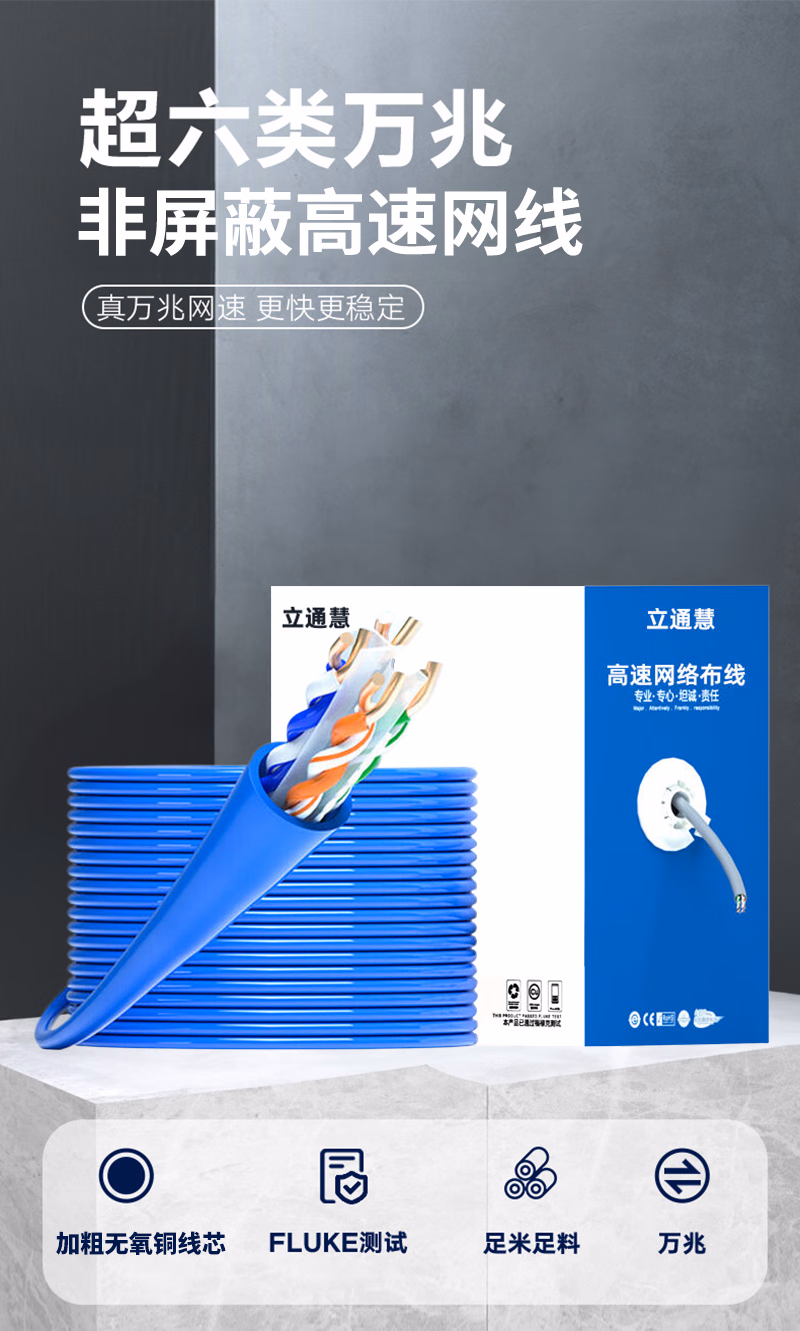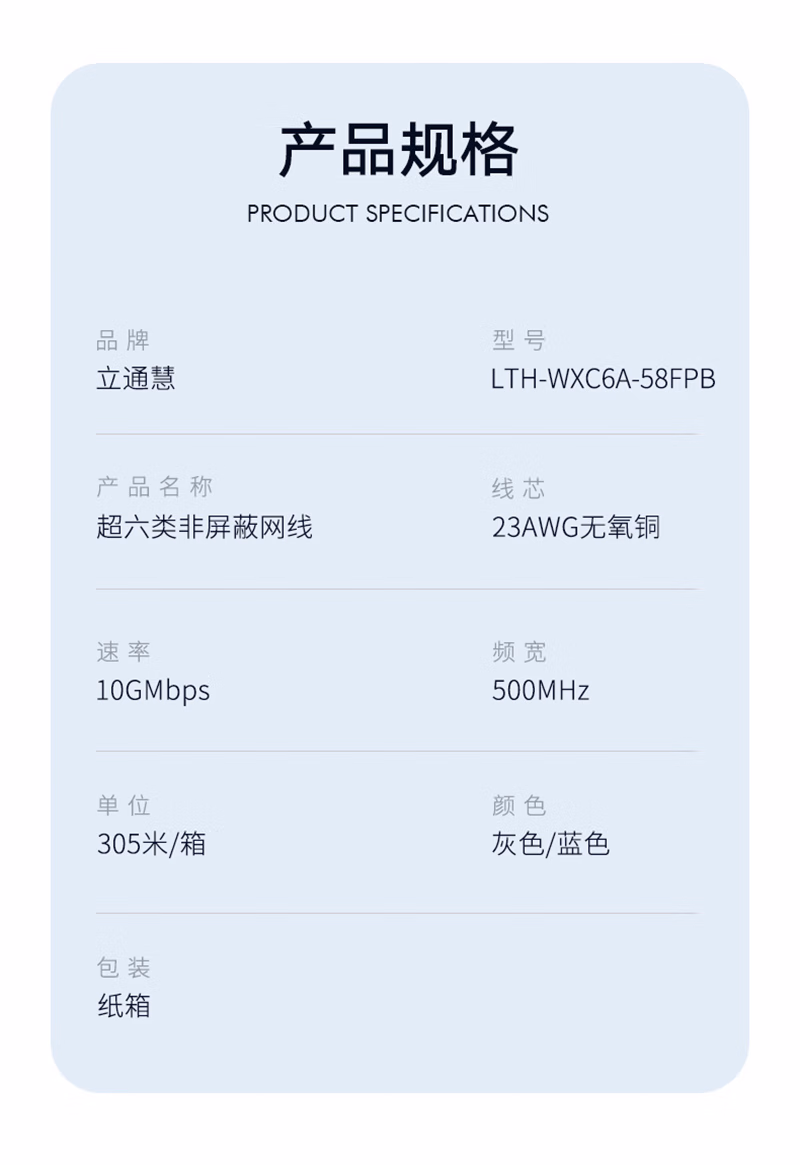 • 商品名称:立通慧LTH-WXC6A-58FPB 超六类非屏蔽网线 305米/箱(计价单位:箱)灰色/蓝色