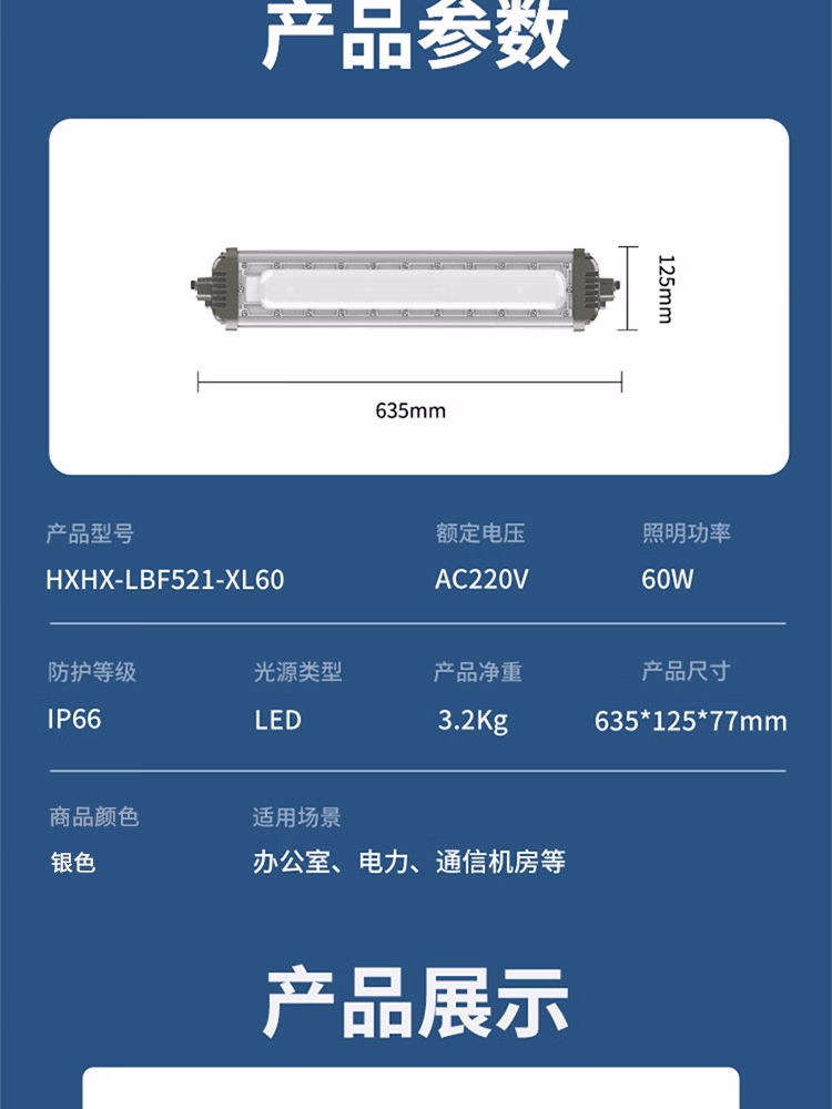 HXHX HXHX-LBF521-XL60 60W、220V、IP66、LED 防水防尘灯 (计价单位:个) 银色